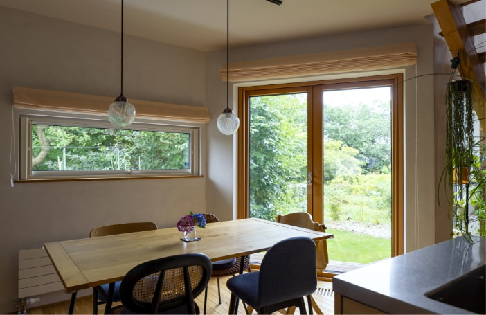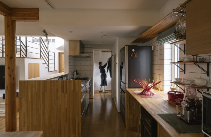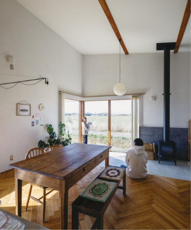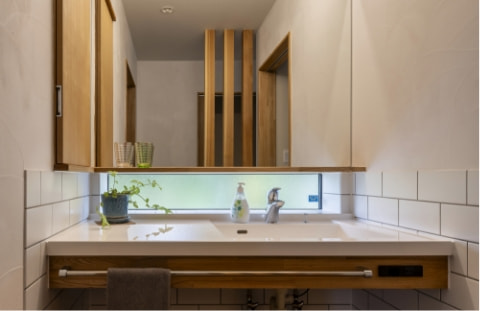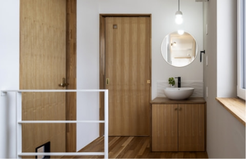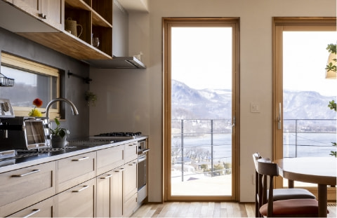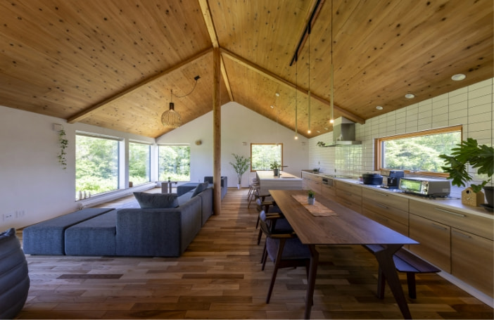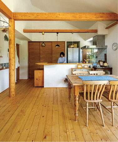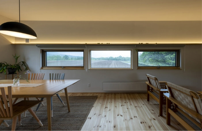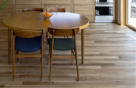 家の各部は直接肌に触れるものばかり。だからこそ自然の素材をできるだけ使いたいもの。道産無垢フローリングやコルクタイル、しっくい塗壁、外壁には道南スギや道産カラマツを採用し、木部にはホルムアルデヒドを含まない植物系自然健康塗料を使用します。自然素材を用いた、温かみがありながらも洗練された住まいは、年月を経ても美しく変化し住まいの味となります。