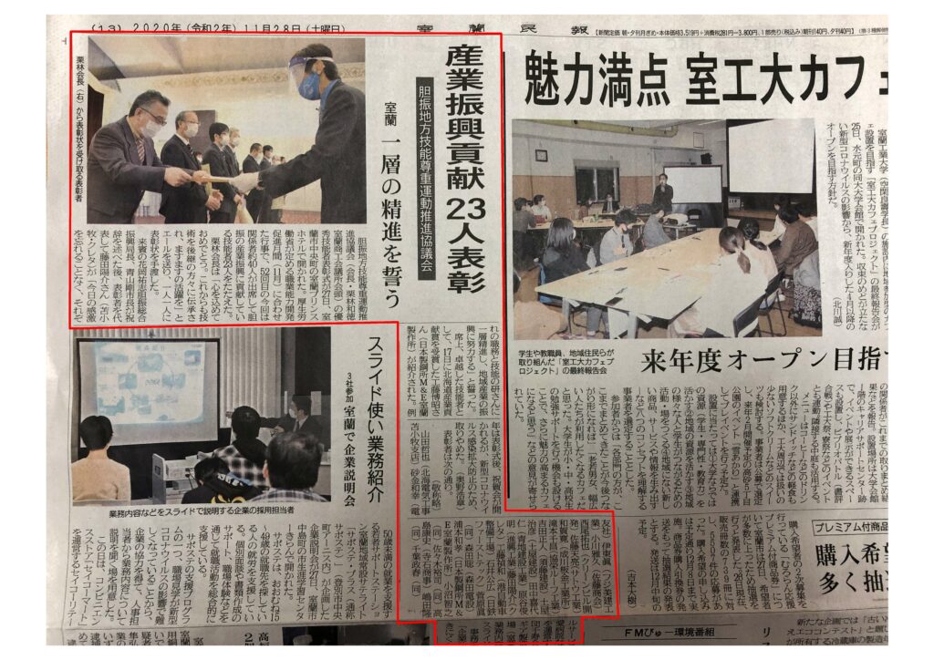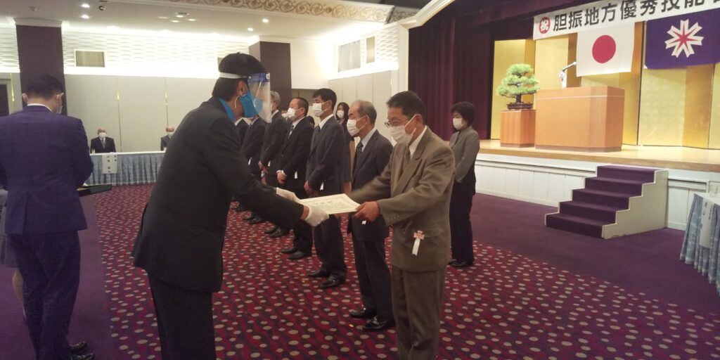「胆振地方技能尊重運動推進協議会2020年度優秀技能者(建築大工)」を受賞しました