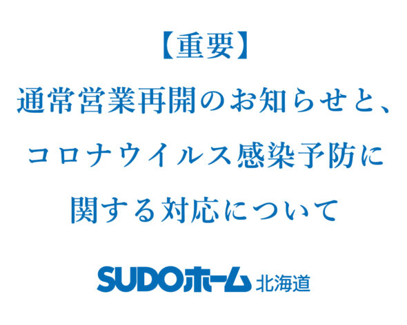 全社 お知らせ 2021.05.29緊急事態宣言延長に伴う、SUDOホーム北海道の対応について