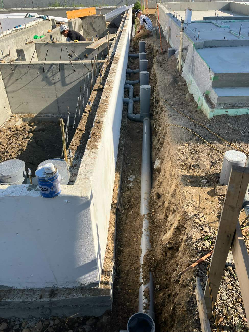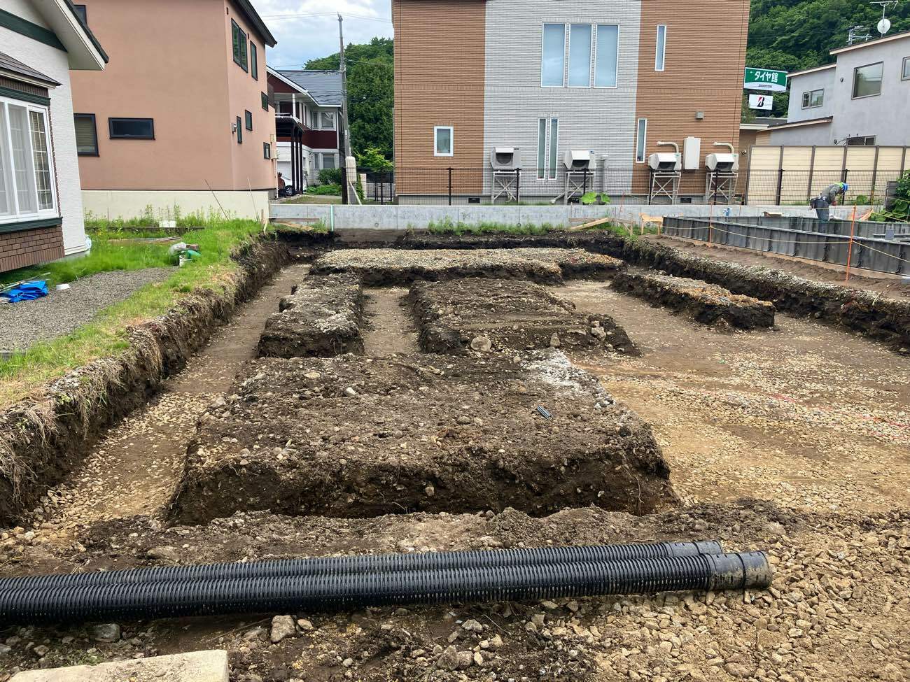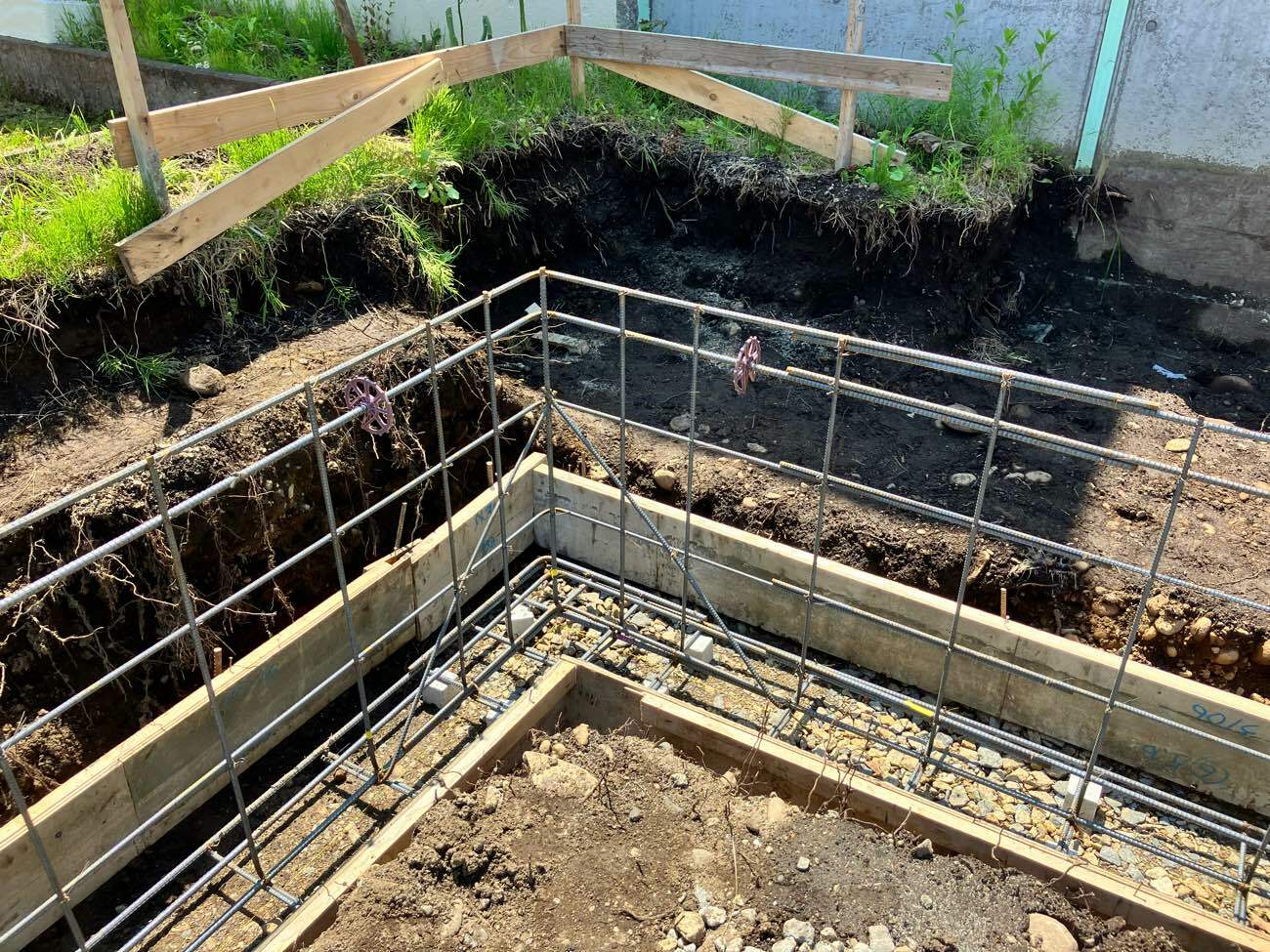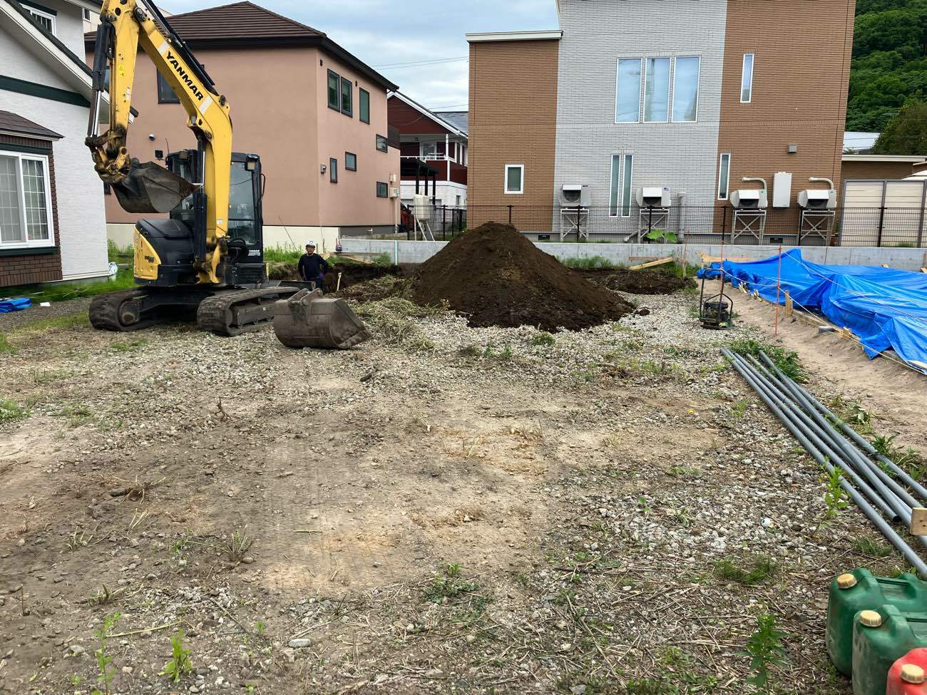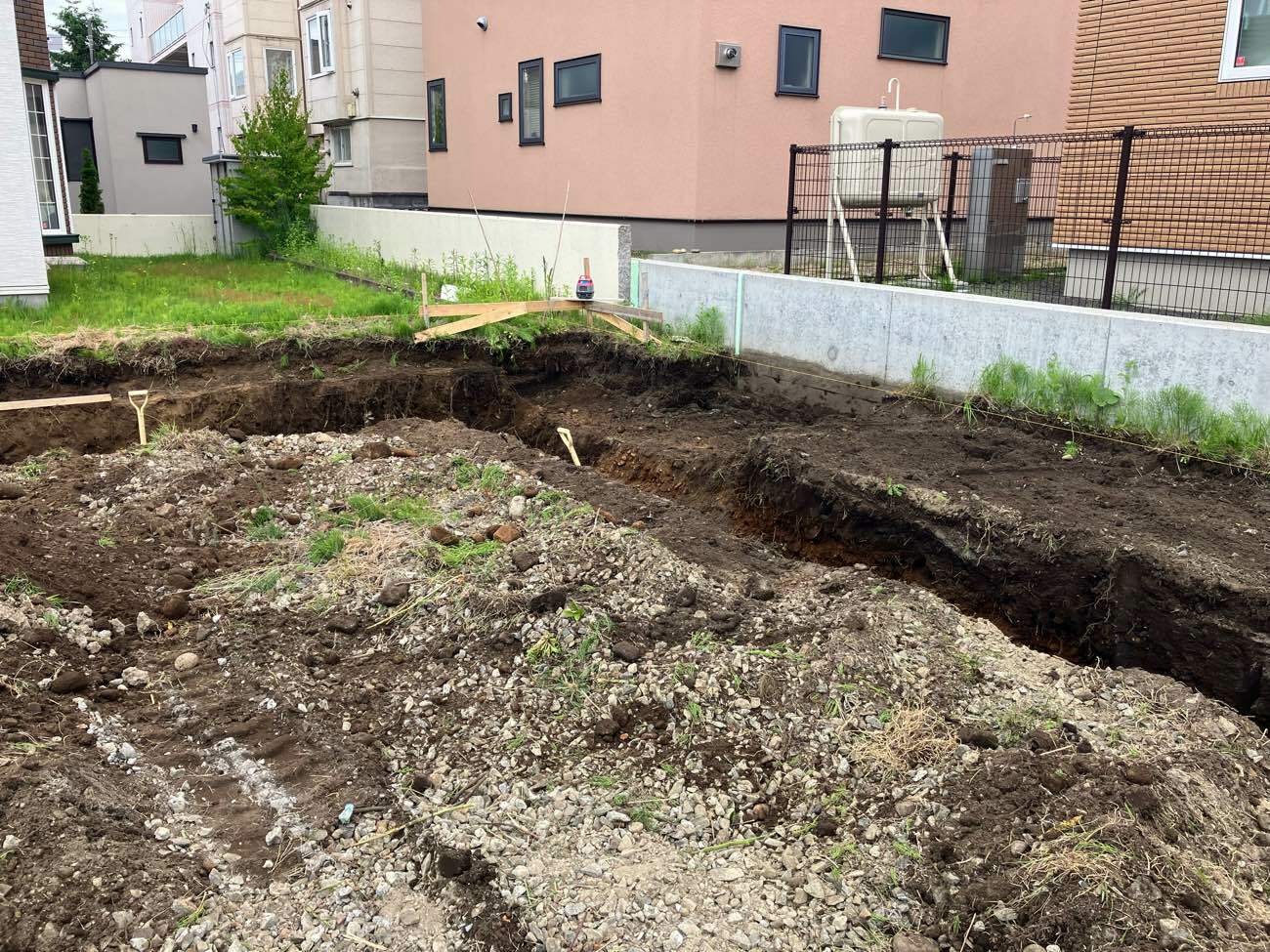 手前から奥に掘り進めていたら、今頃敷地の角っこに重機が残っていたことでしょう。