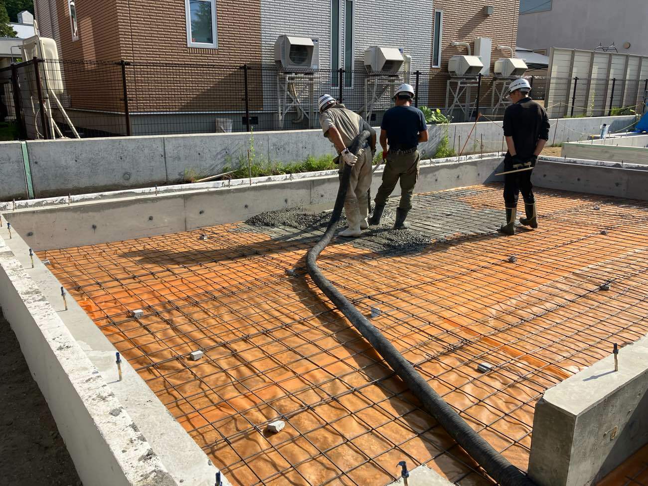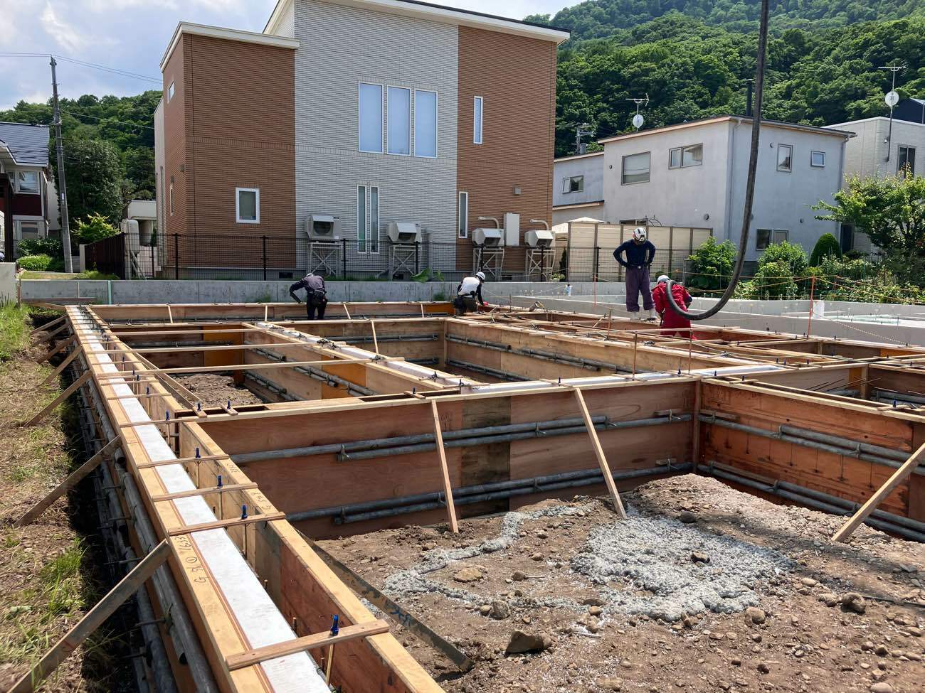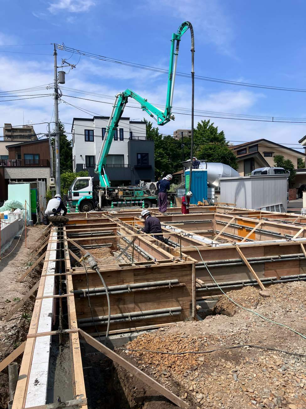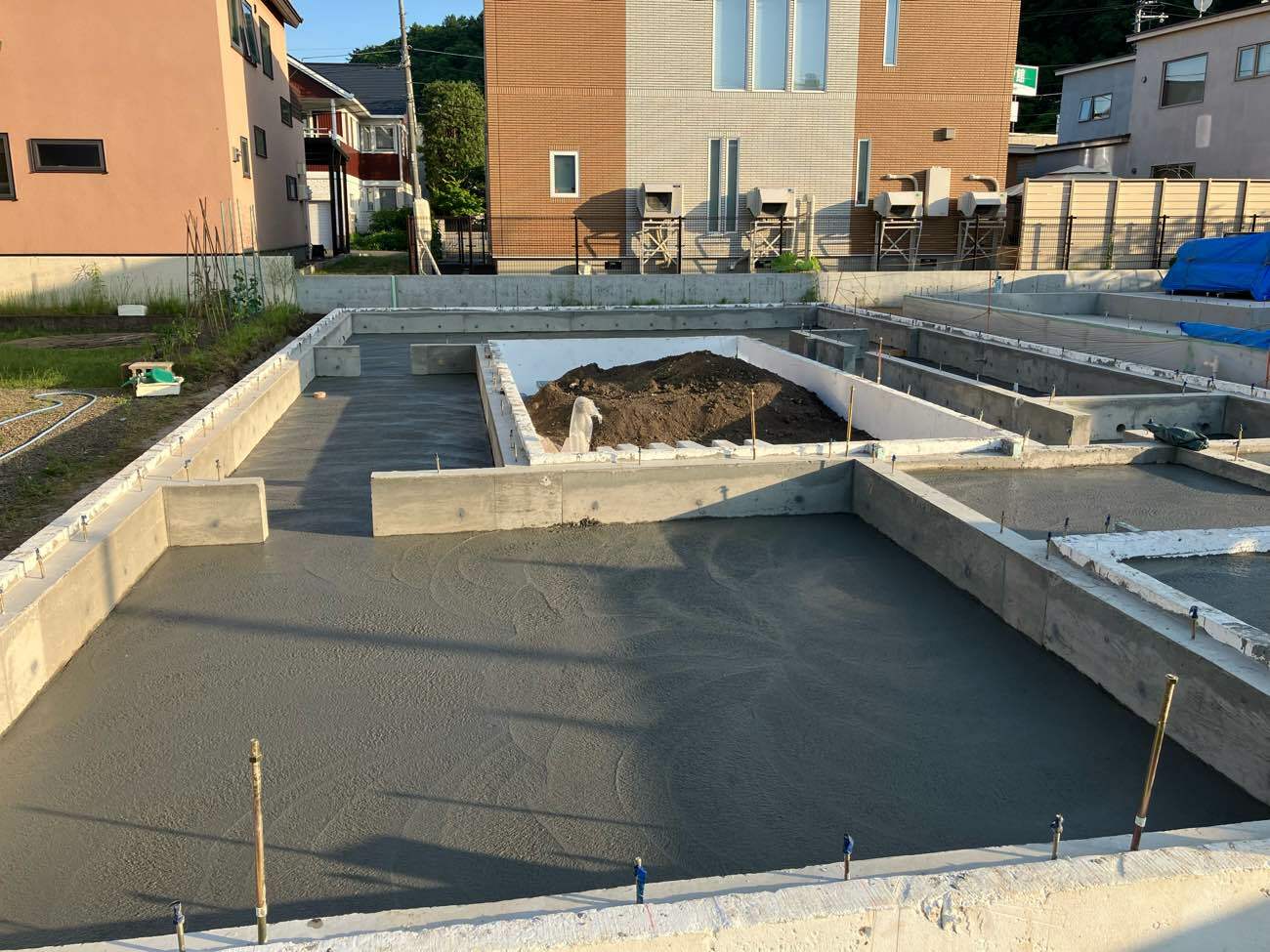 防湿コンクリートを打設し、これで基礎工事が完了です。