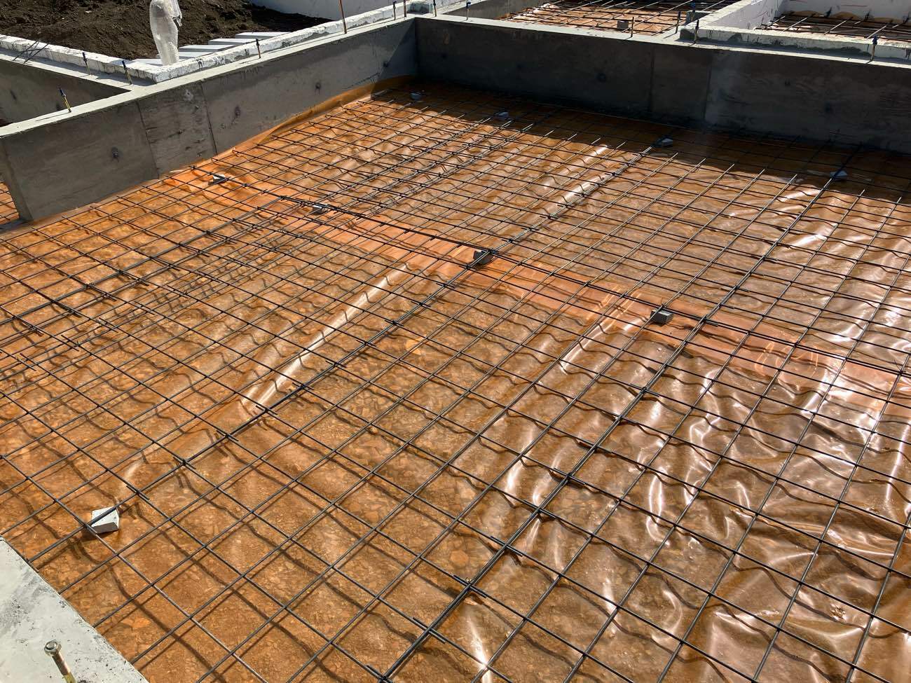 地面と鉄筋の間にいるブロックは被り厚さを確保するためのスペーサーです。