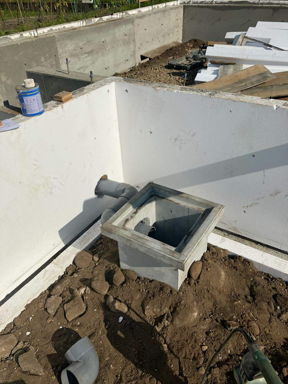 写真の枡に雨水を集水し、配管を繋いで排水します。