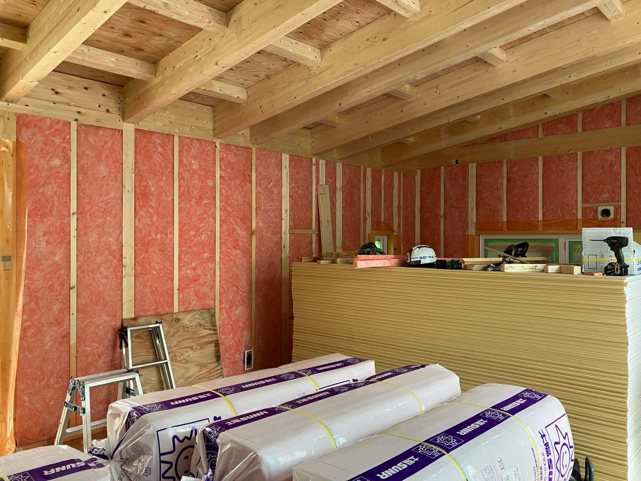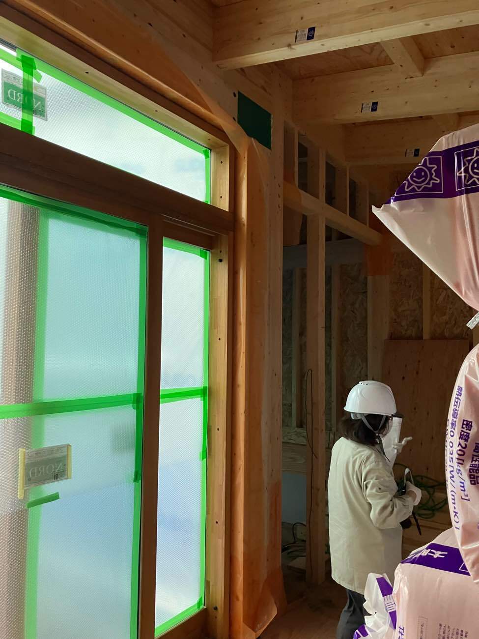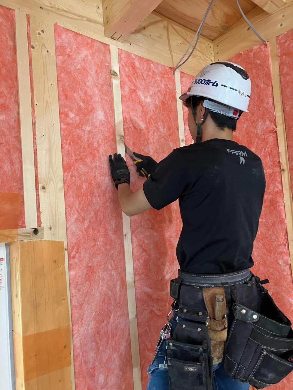 SUDOホームはグラスウールをSUDOの職員大工さんが充填します。
