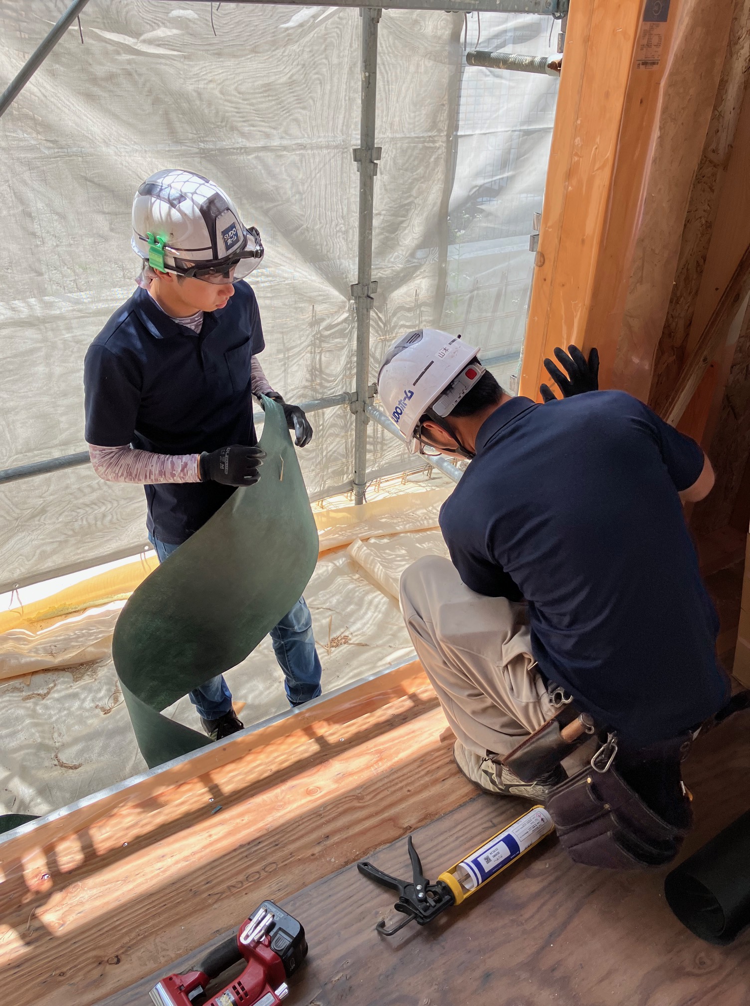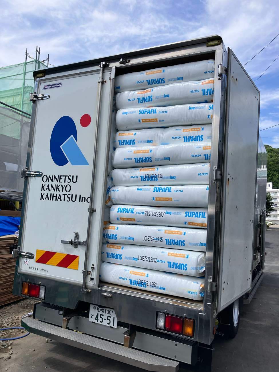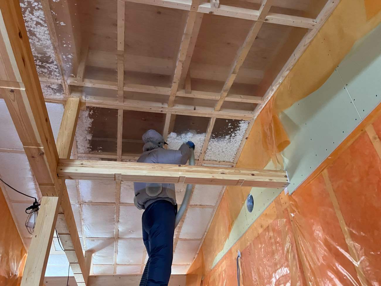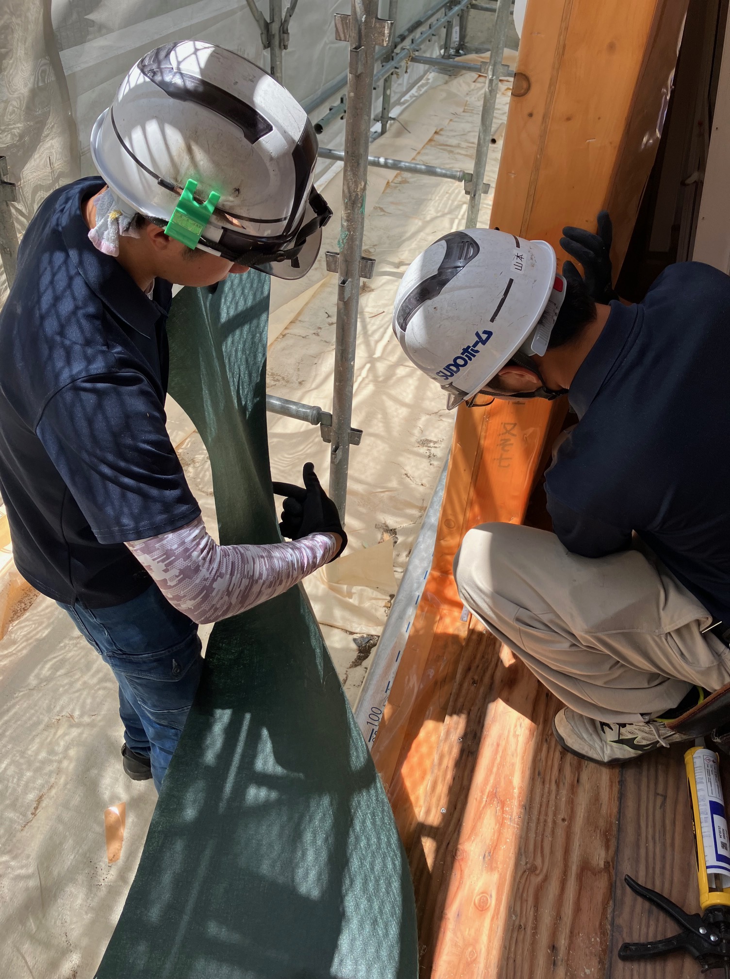 SUDOホームはグラスウールをSUDOの職員大工さんが充填します。
