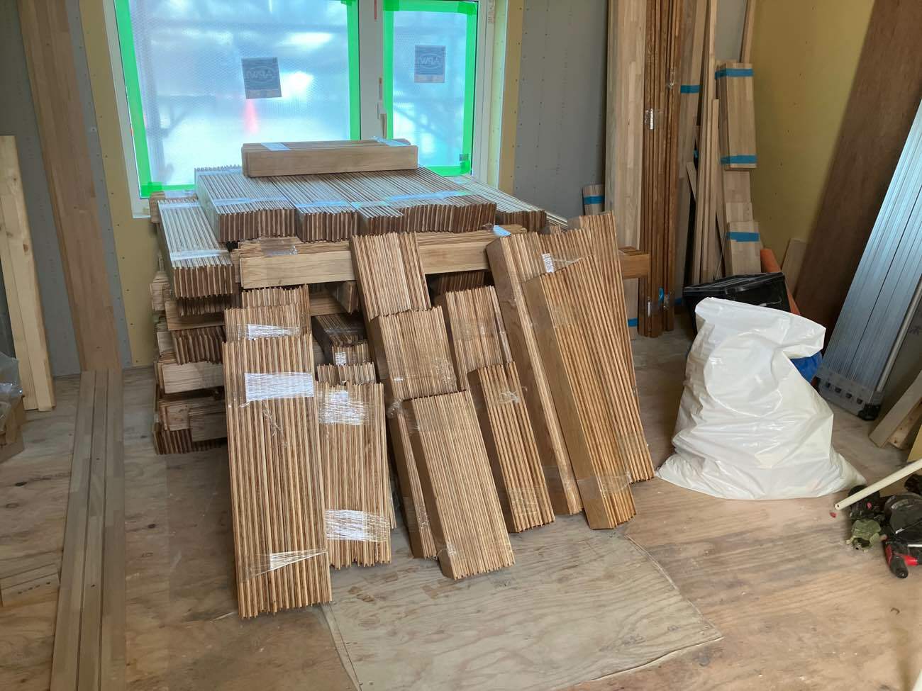 石膏ボードの施工が終わる頃に、現場にフローリングが届きました。