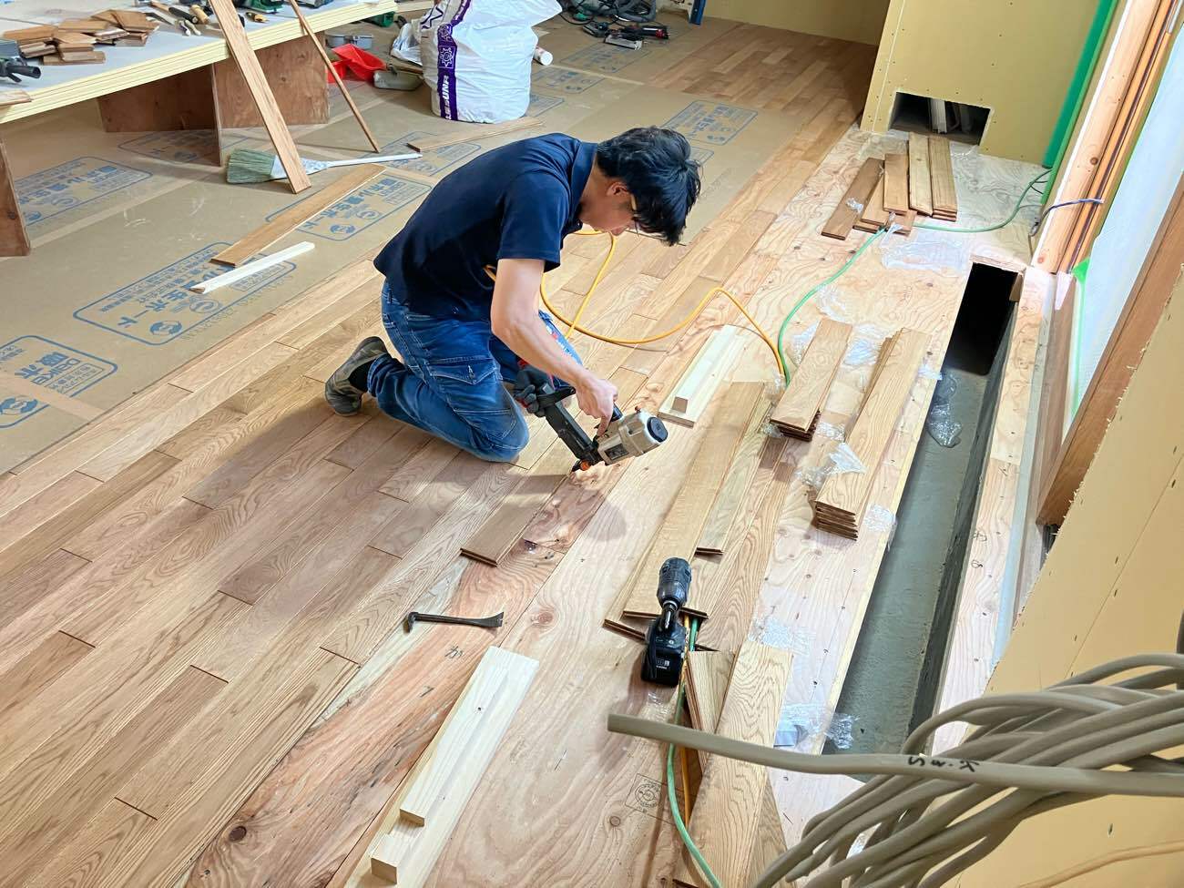 このフローリングを1枚1枚大工さんが丁寧に張っていきます。
