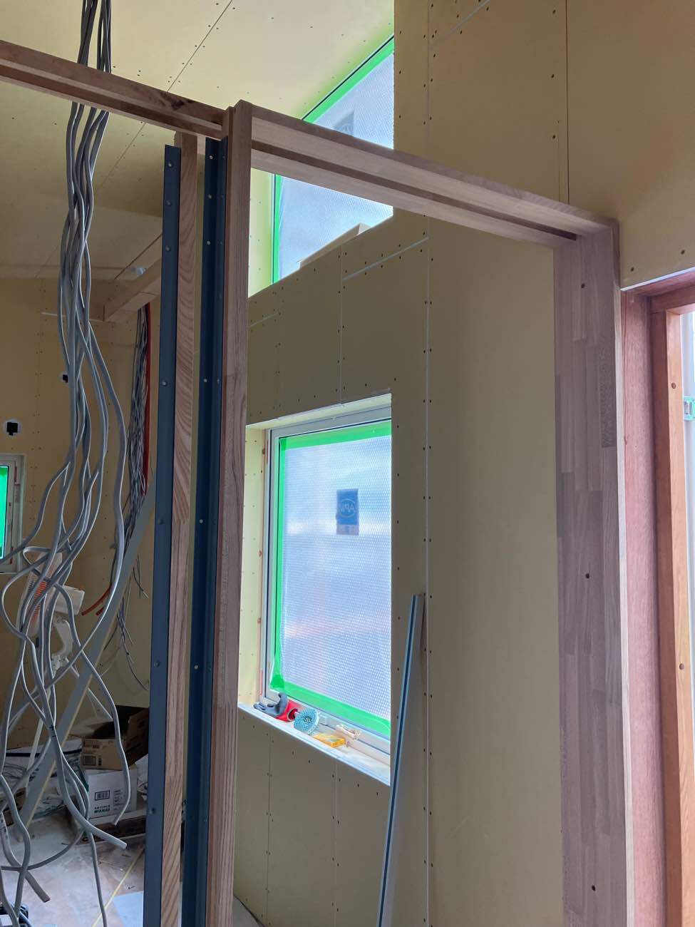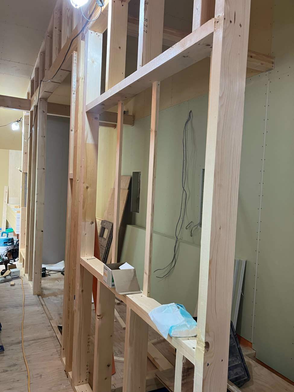 わりと早々に壁の石膏ボードを張ってしまうので、