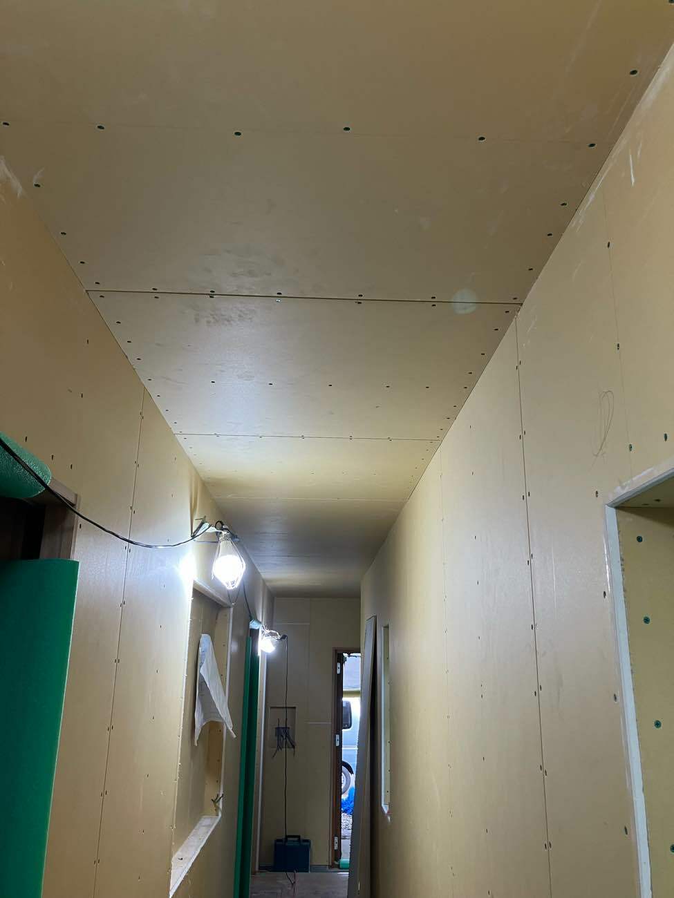 天井・壁の石膏ボードを張るとこんな感じですが、