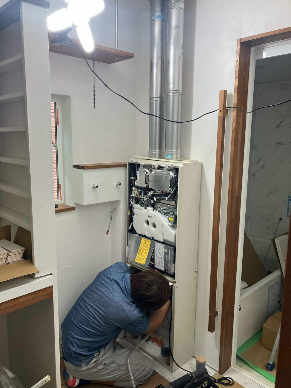 右側に見える3本のダクトが換気用、左側に見えている2本のダクトはボイラーの煙突になります。