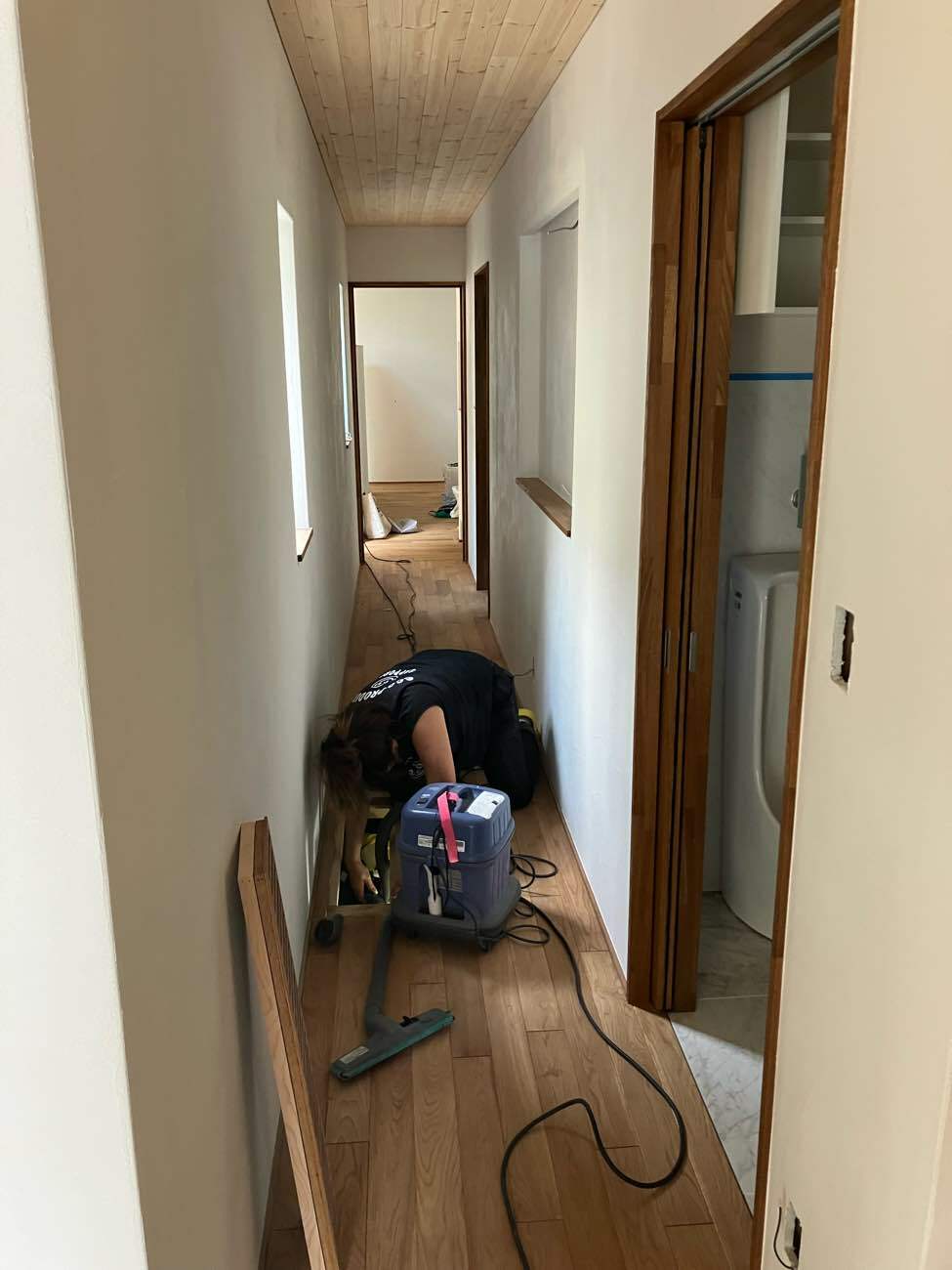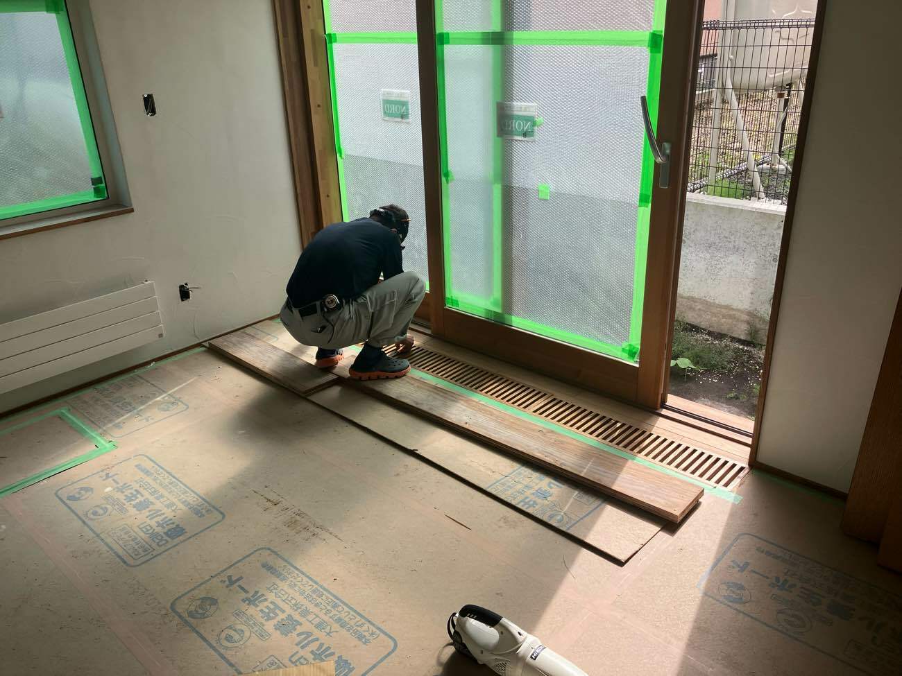 フローリングを張り終えるといよいよ大工工事の終盤に差し掛かります。