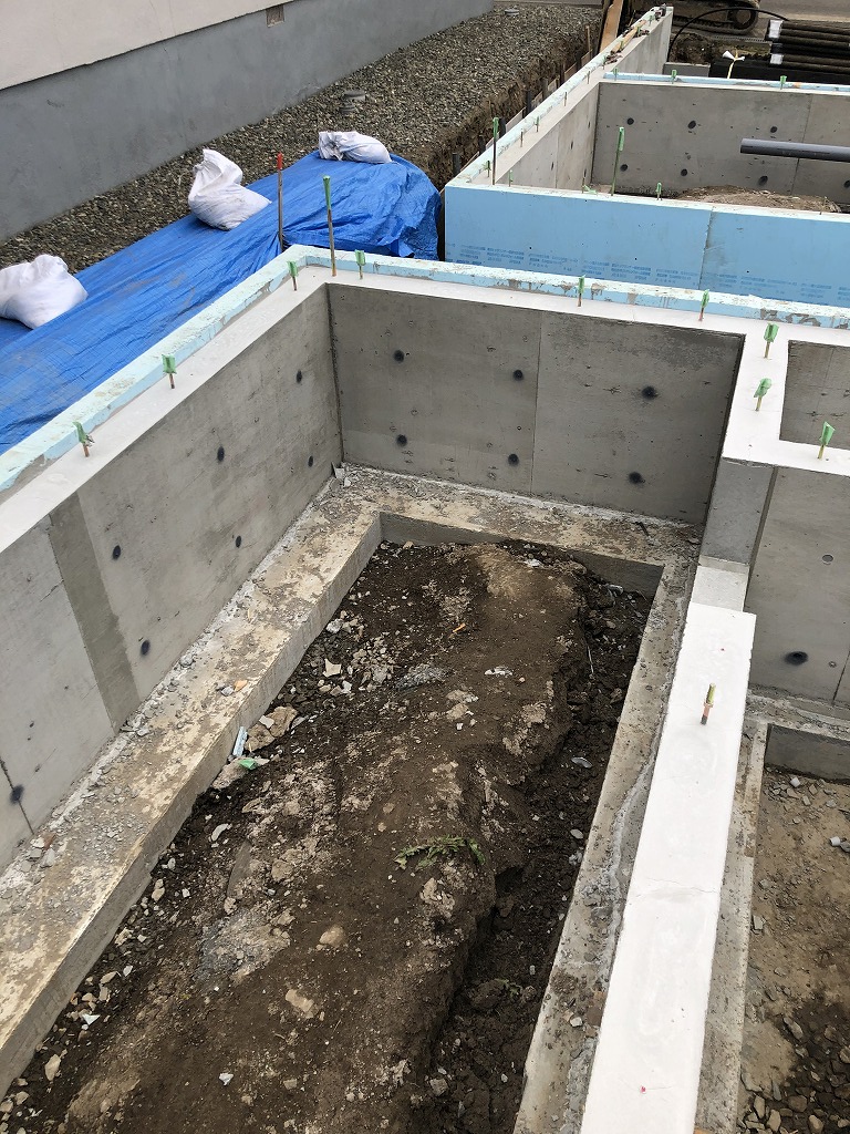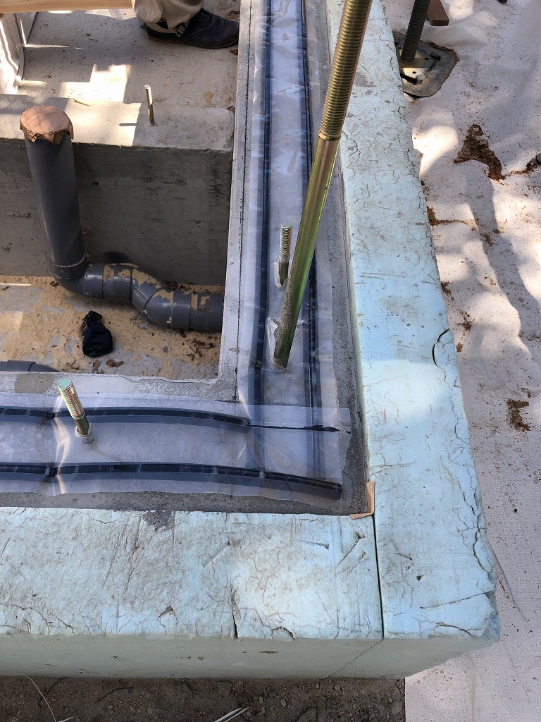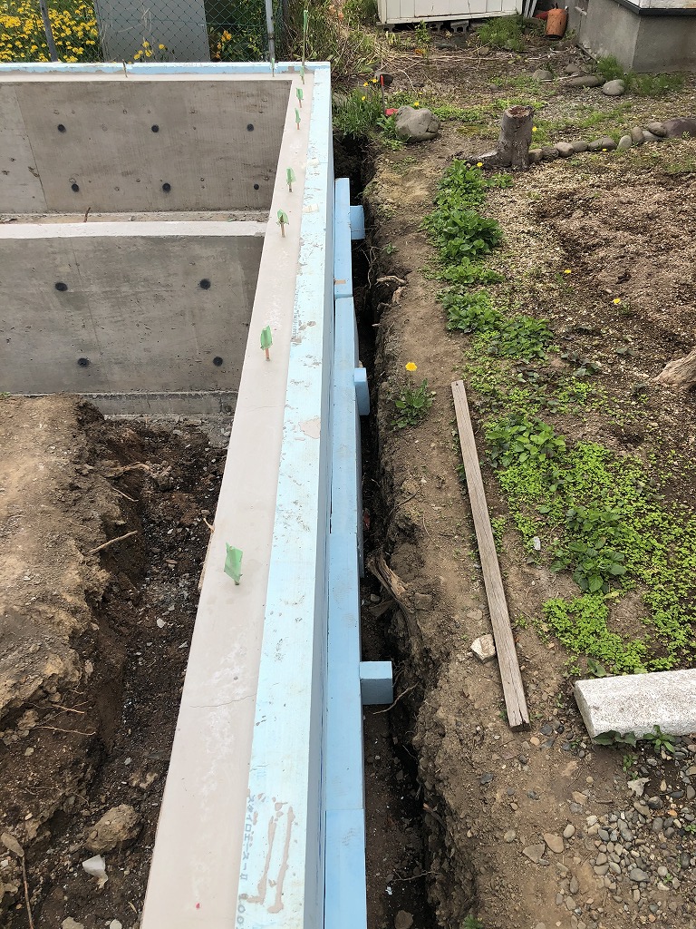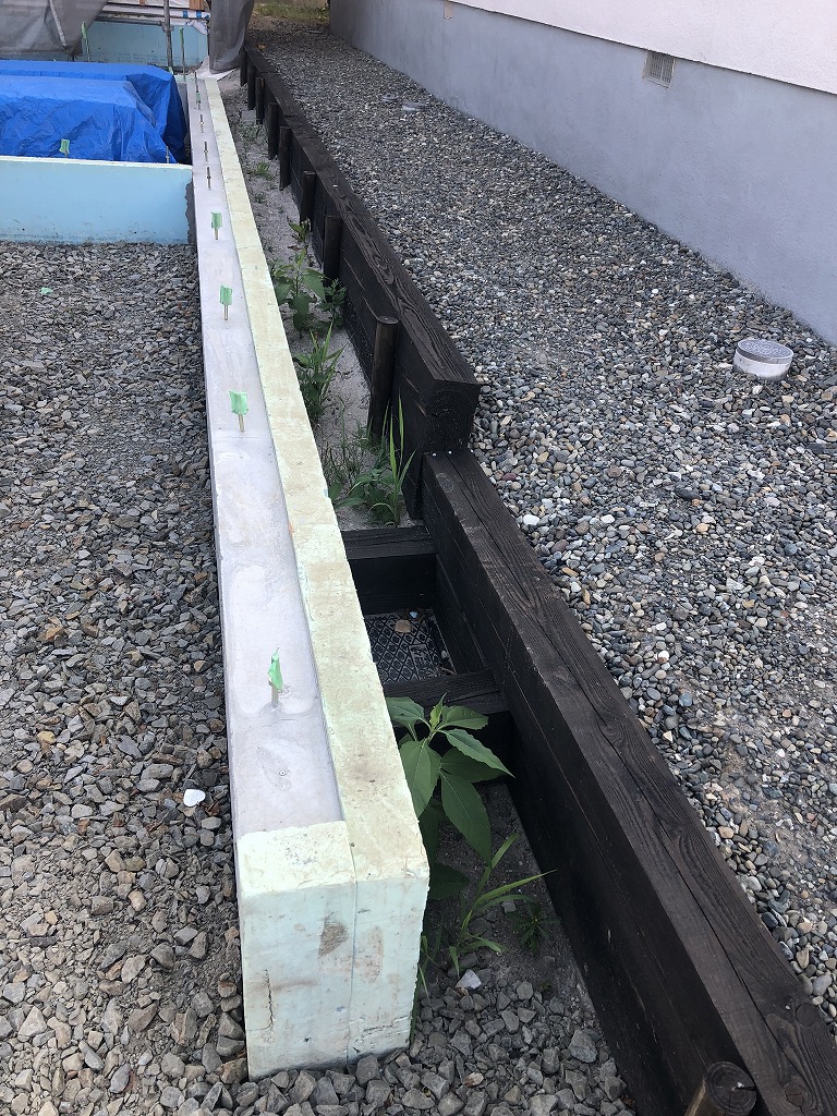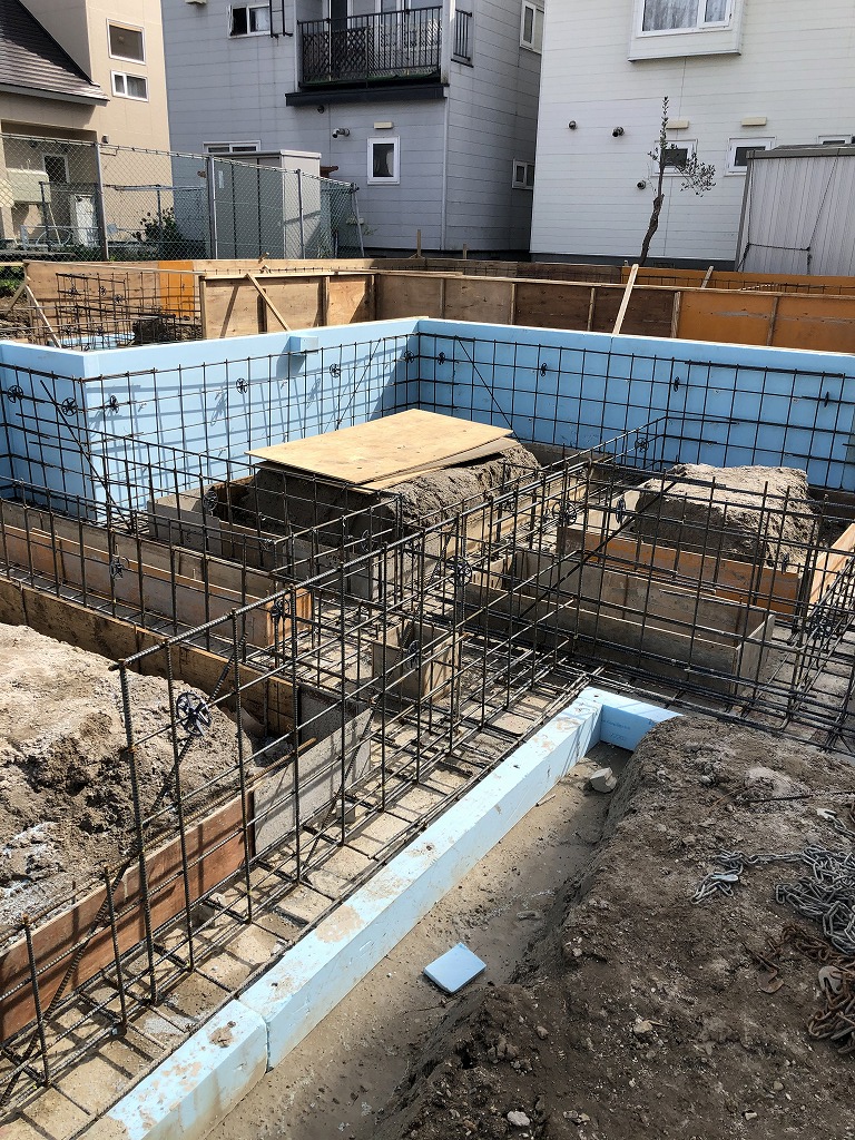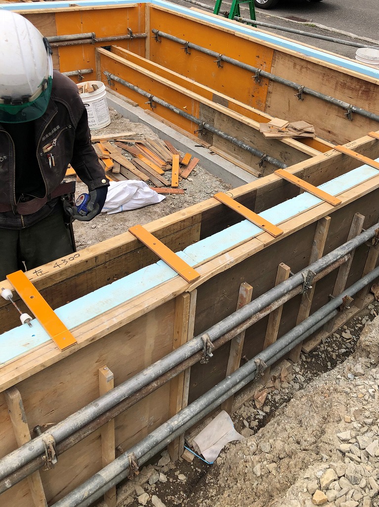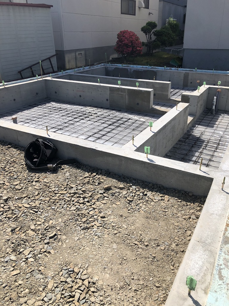 例えば上の写真のように基礎の立ち上がり部分の被り厚さは「4cm以上」お見事です。5cm以上の被り厚さが確保されていますね。これで鉄筋をサビから守ることができます。