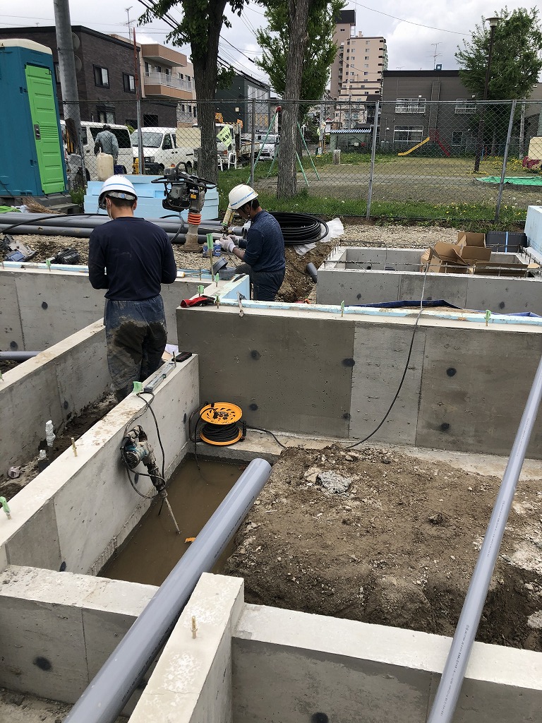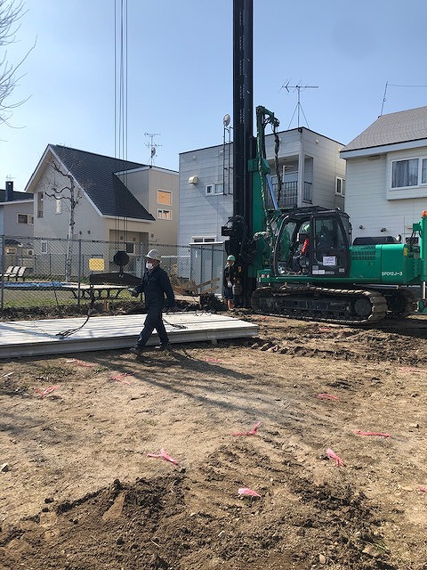 カリン塔まで繋がっているんじゃないかと思うくらい大きな機械です。ここ八軒は、支持地盤が地面よりもちょっと深いところにあるようです。