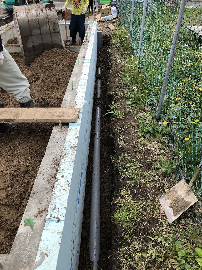 前もって設備屋さんに埋設配管を調べてもらった時には記載されていなかったのにナゼか土管が出てきました。