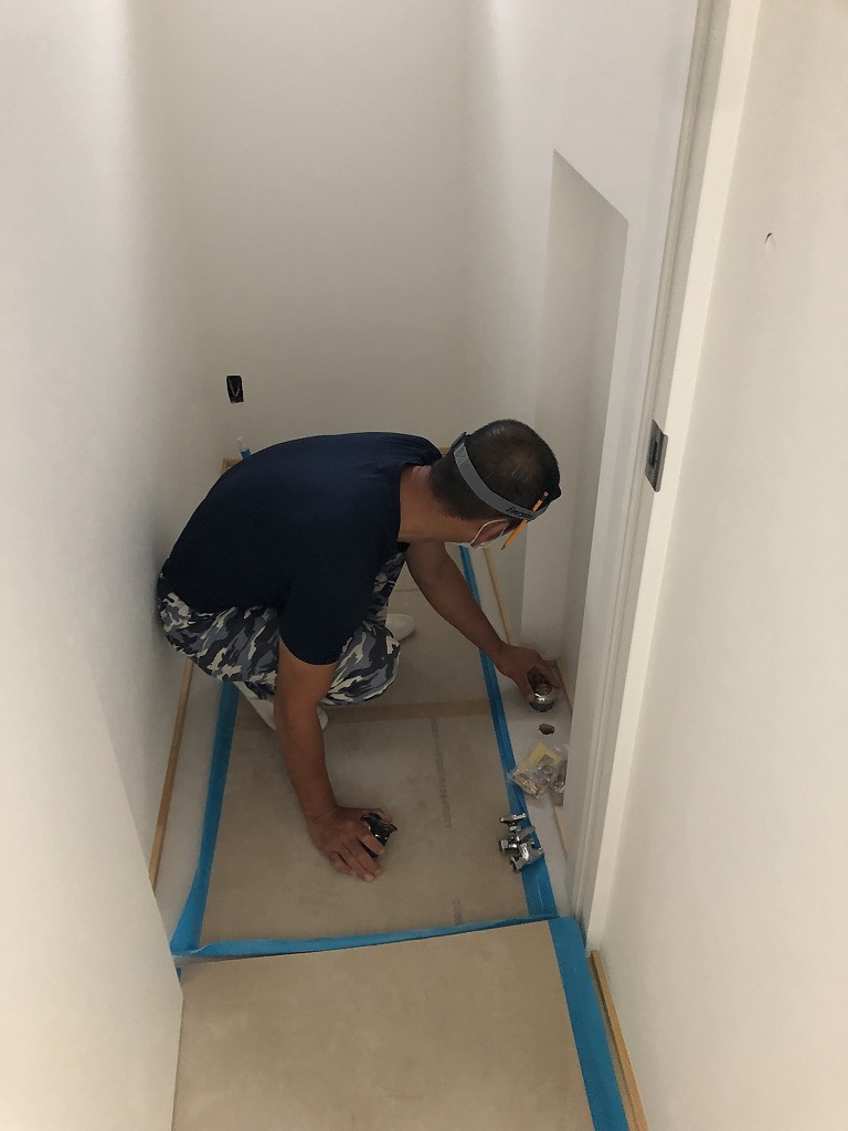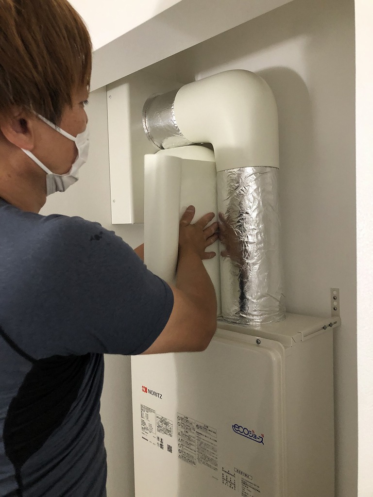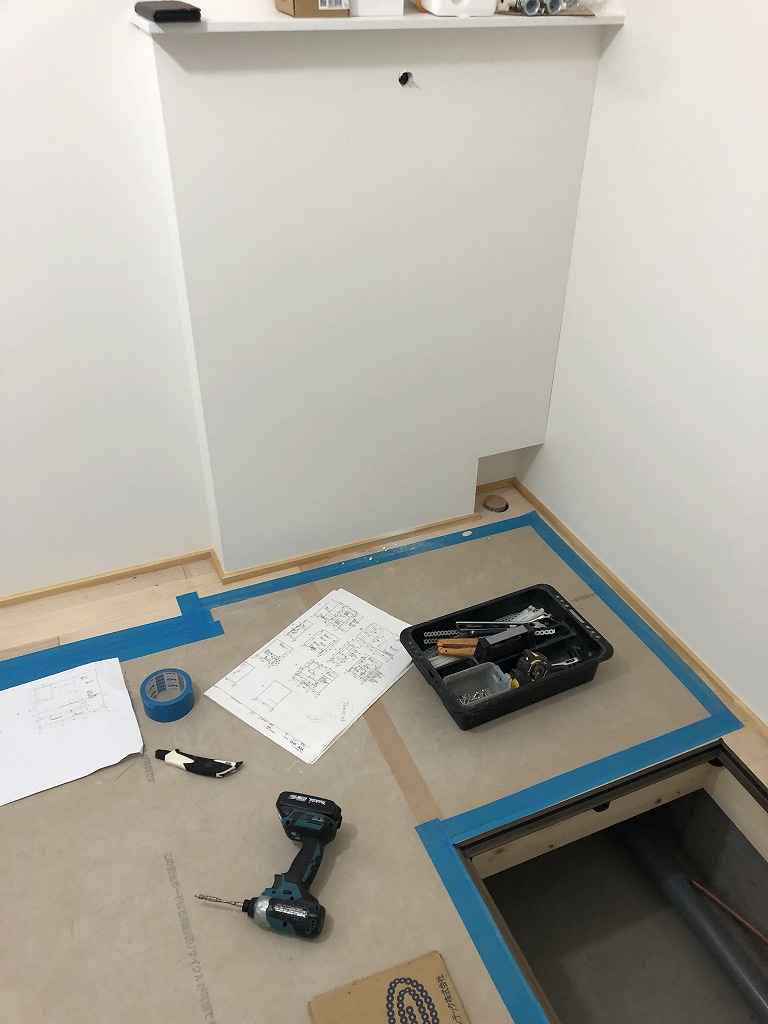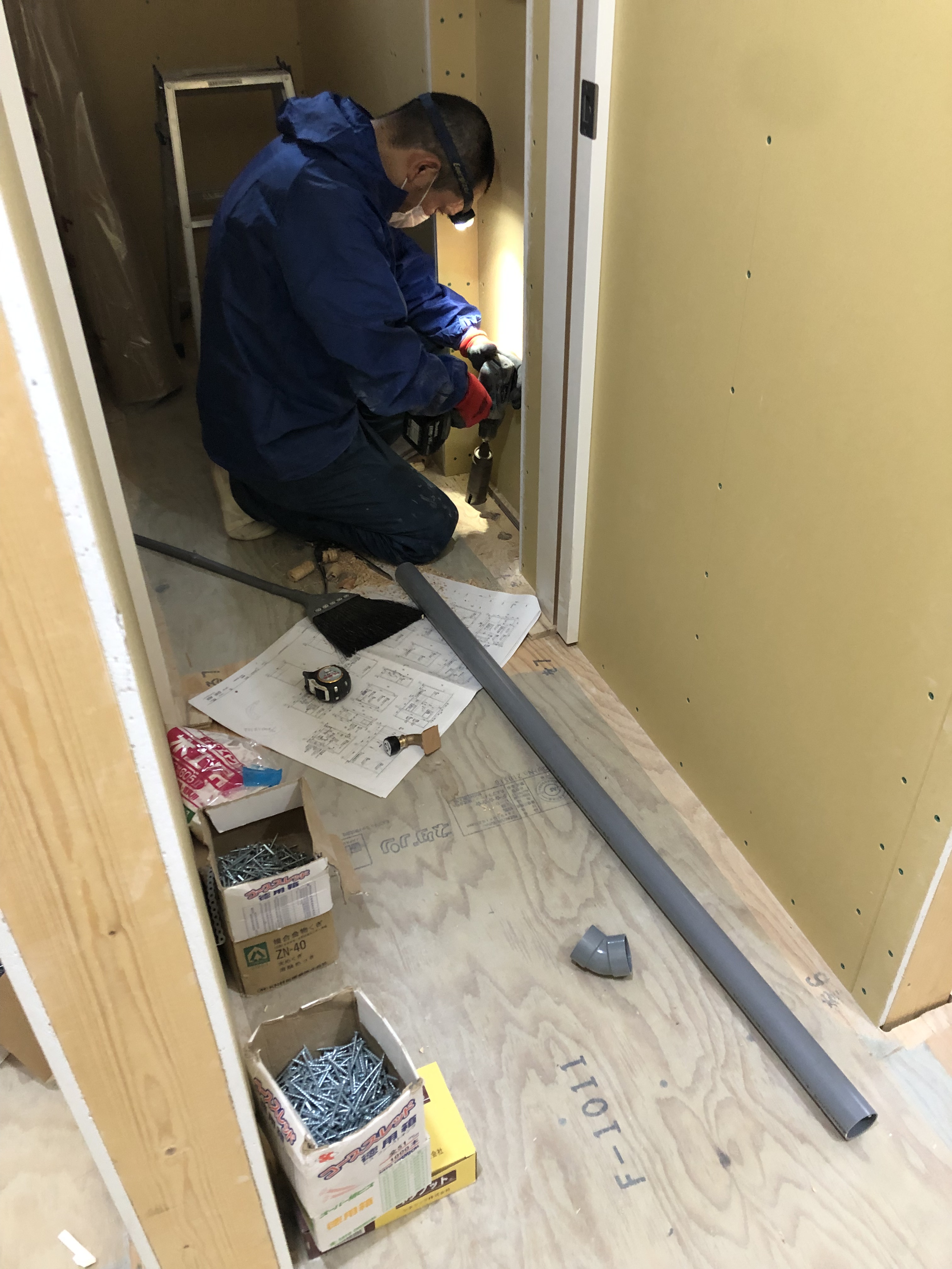 普段は床下での作業が多くなかなか写真に写る機会の少ない設備屋さん。