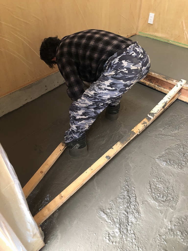 流し込んだコンクリートを左官屋さんが、コテでナデナデして仕上げていきます。