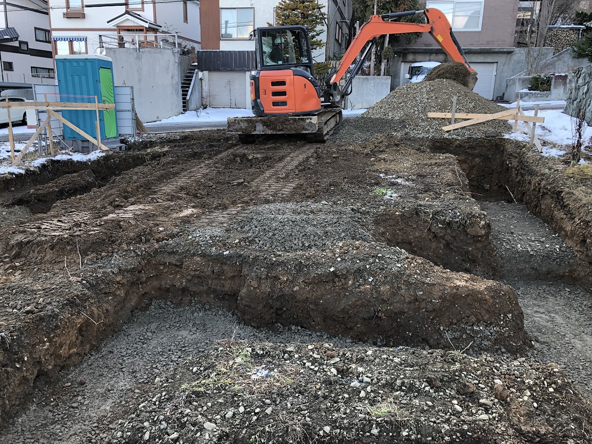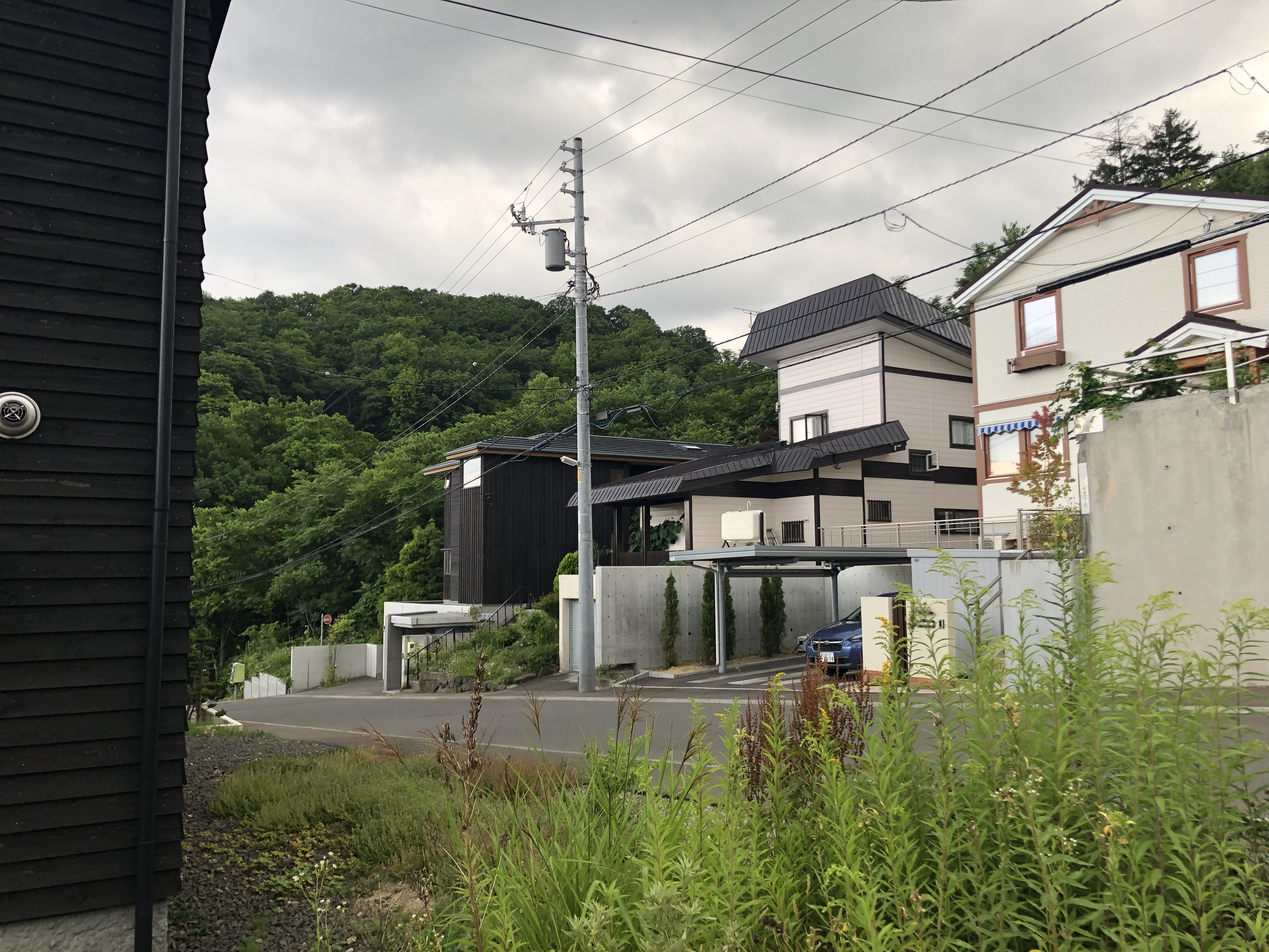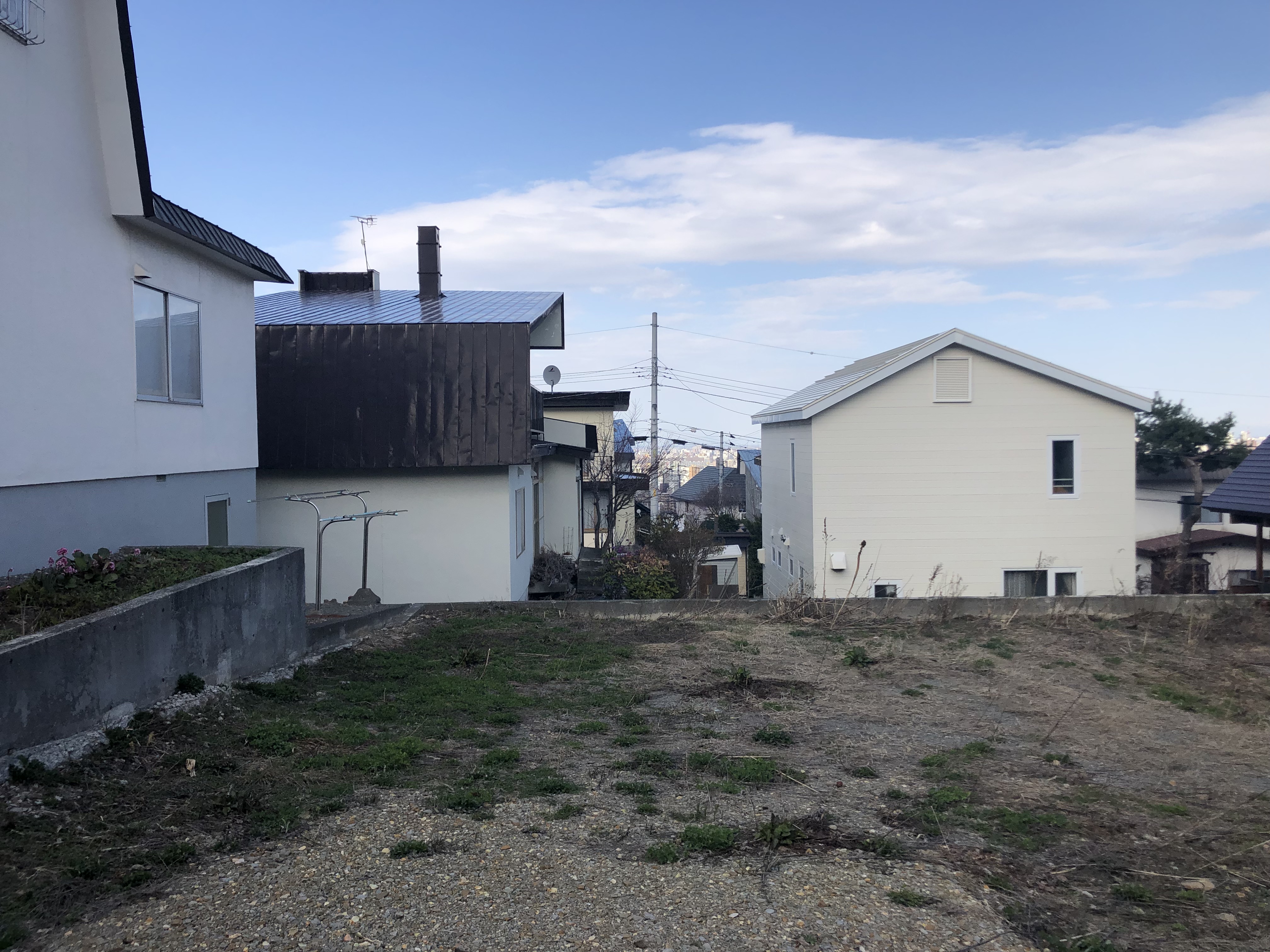 いつもは傾斜に倣って計画する事が多いのですが、この敷地は奥に札幌市内があり、できるだけ高い位置からの景色が良いと判断!