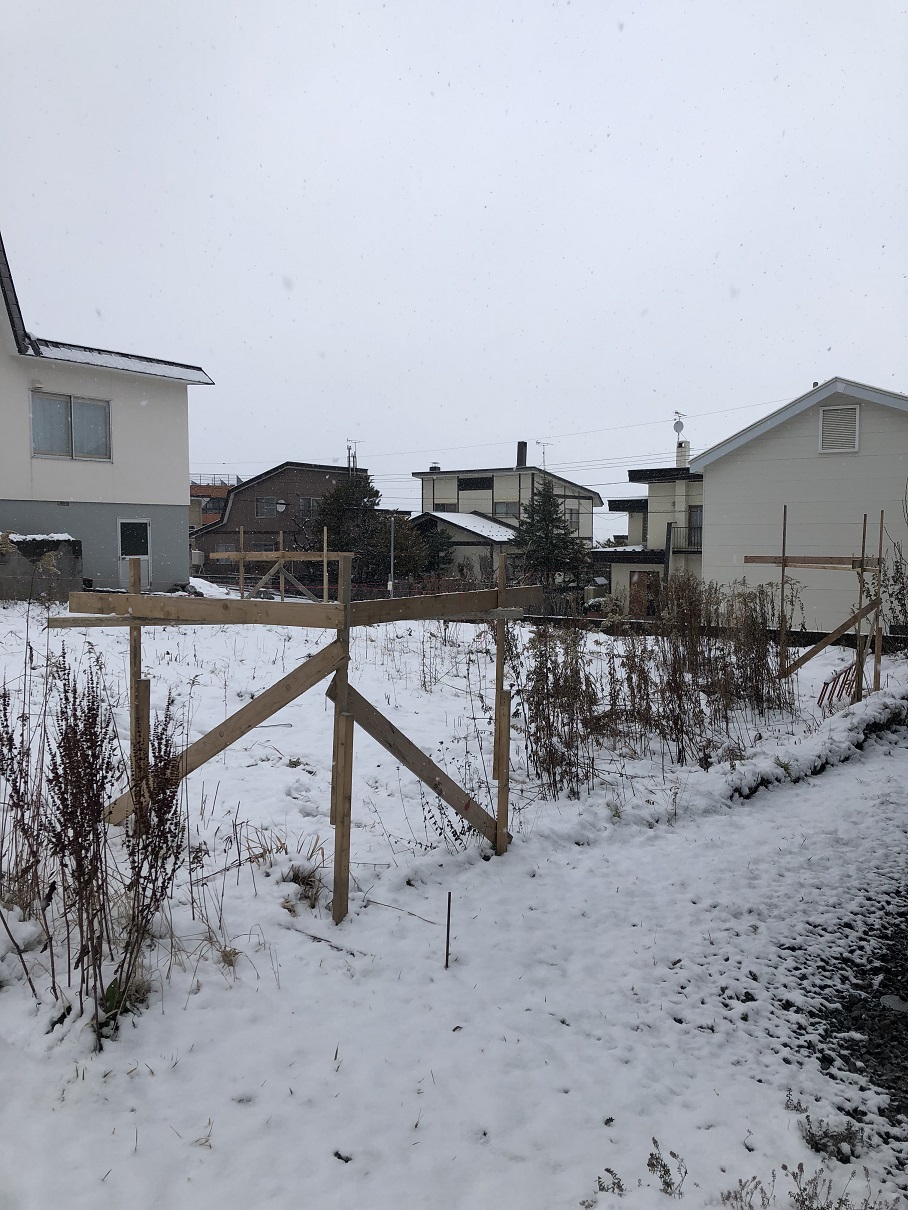 こんな感じで木を組み合わせて、遣り方をだしました。