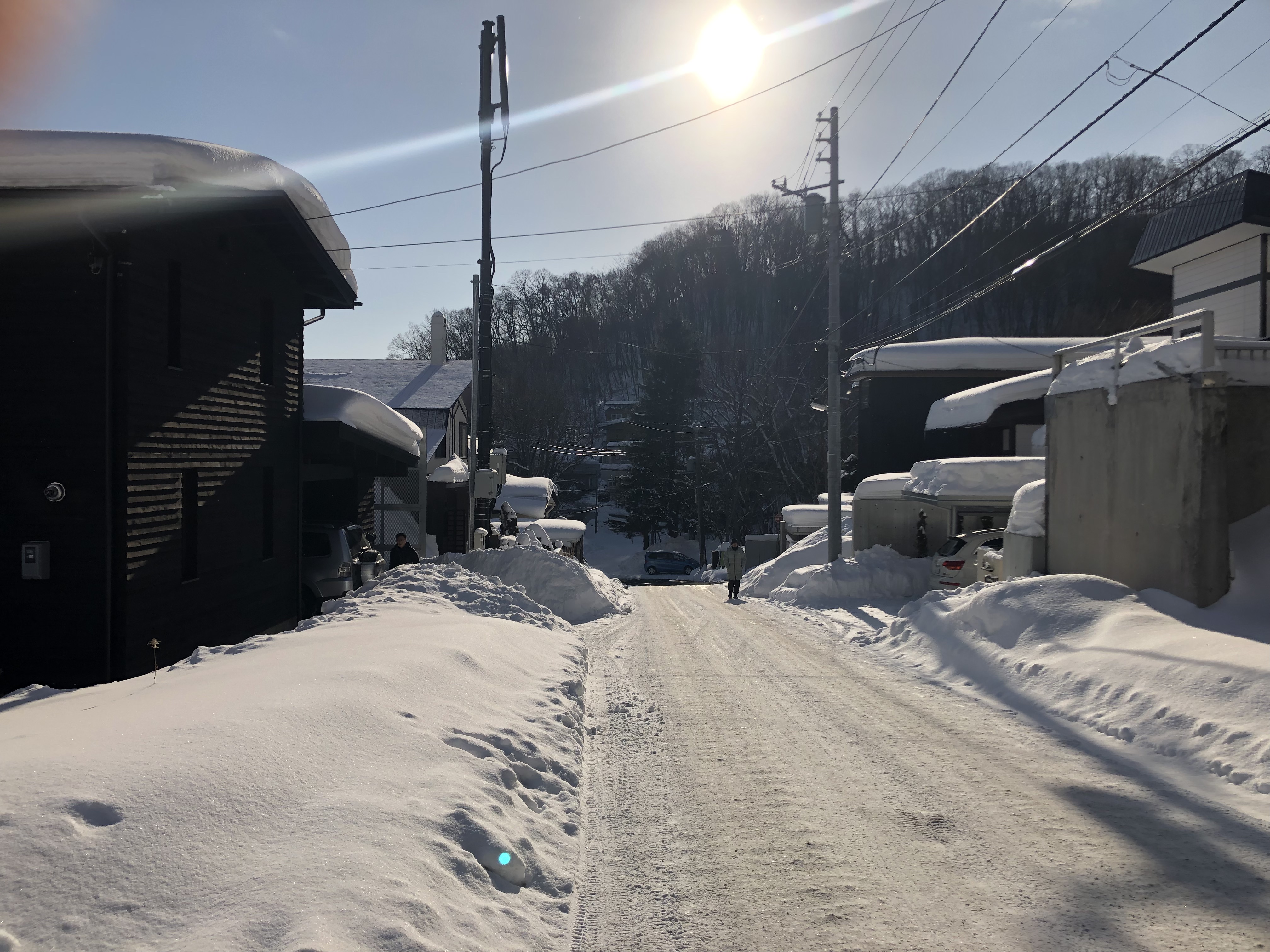 前面道路の冬の状況。8m道路なのですが、雪が降ればこんな感じに。( ̄ー ̄;