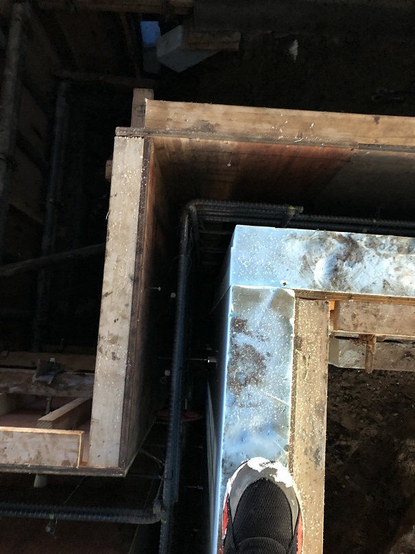 あ、スミマセン。安全靴の話をしてしまいました。コーナー部分の鉄筋も、しっかり定着・被り厚さを確保しています。