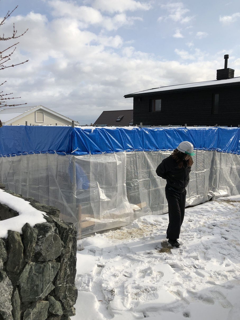 テントを架けているので、どんなに雪が降ろうと順調に工事が進んでいきます。