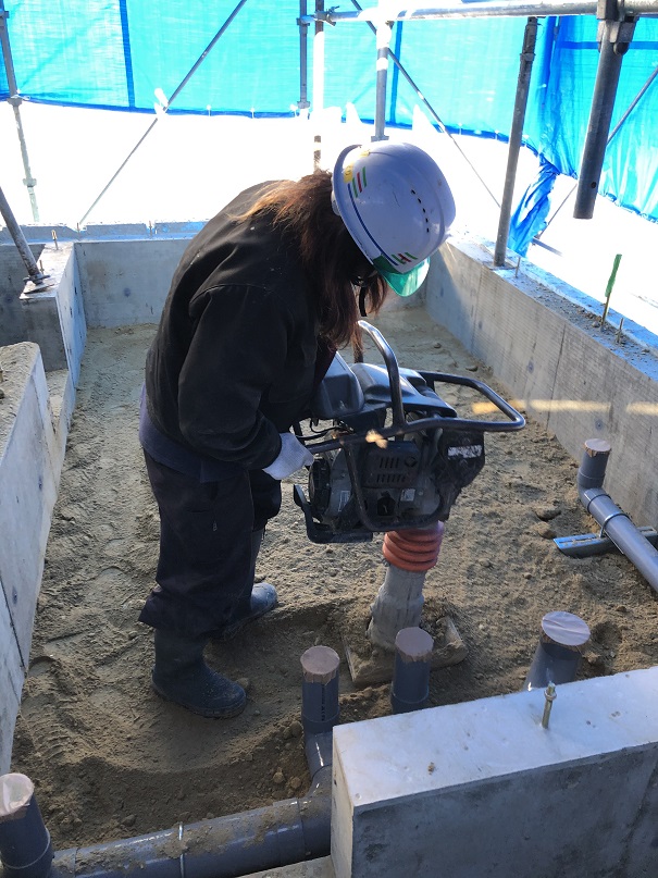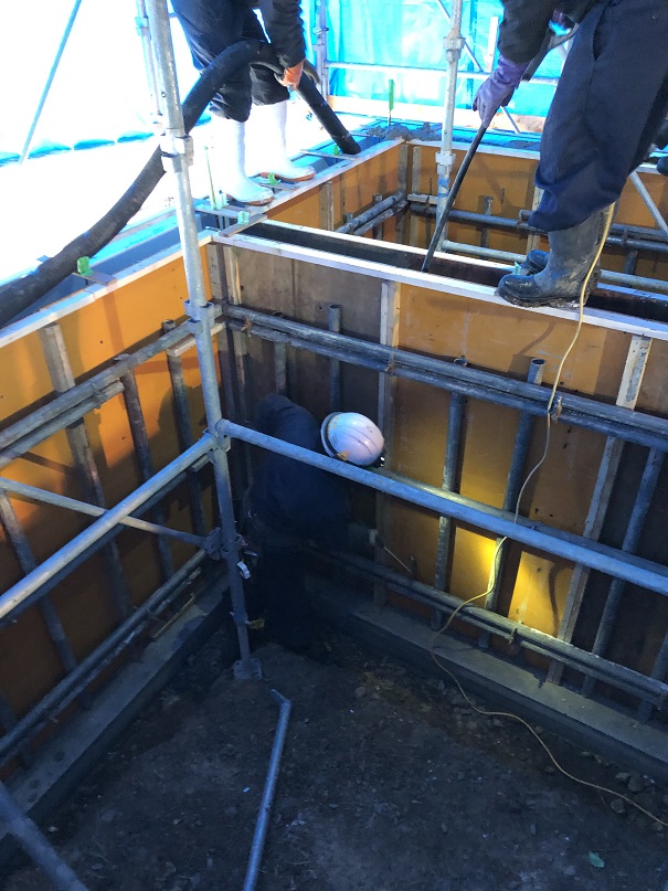 写真を撮ったらいよいよベースコンクリートの打設です。