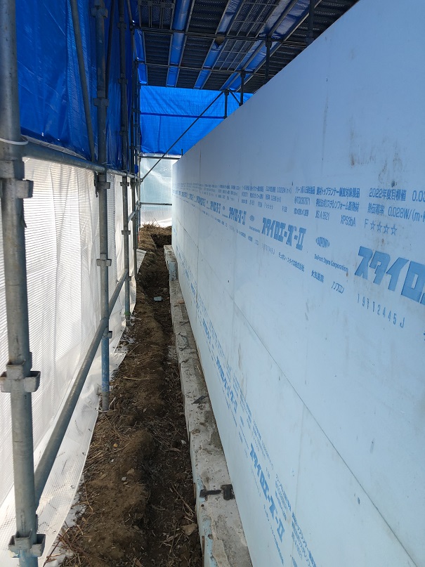 傾斜地なので、奥の方の基礎は高基礎での計画です。