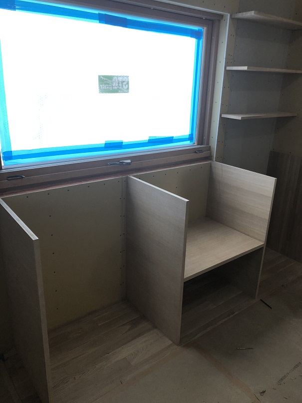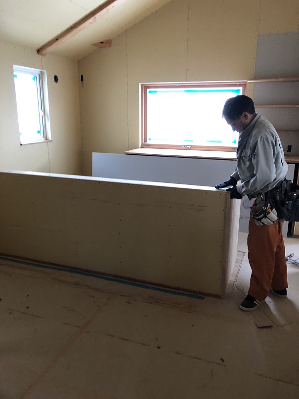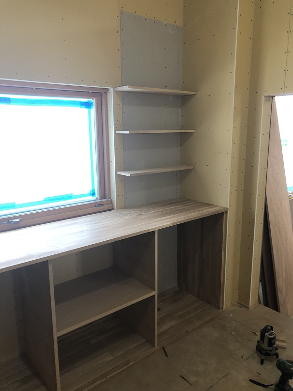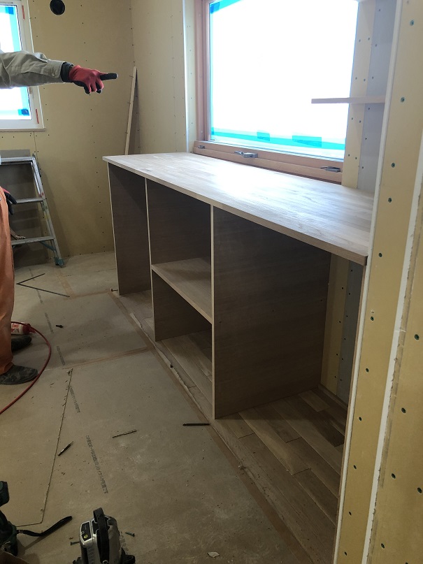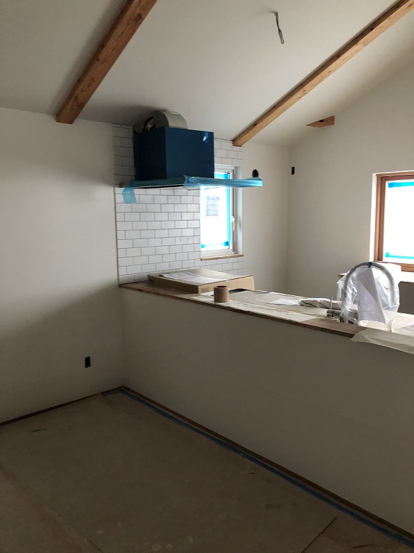 カウンターとして使います。モールテックスと呼ばれる左官材です。こんな感じで、SUDOの標準仕様をベースに随所に新たな試みを組み合わせたモデルハウスとなっております。