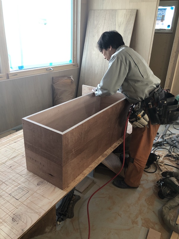 さて、場所が変わってこちらは内装屋さんの作業場です。