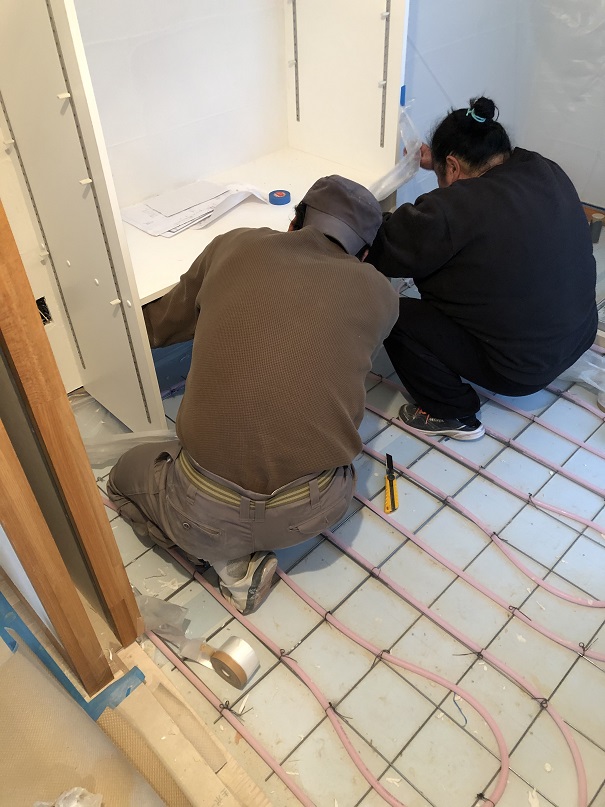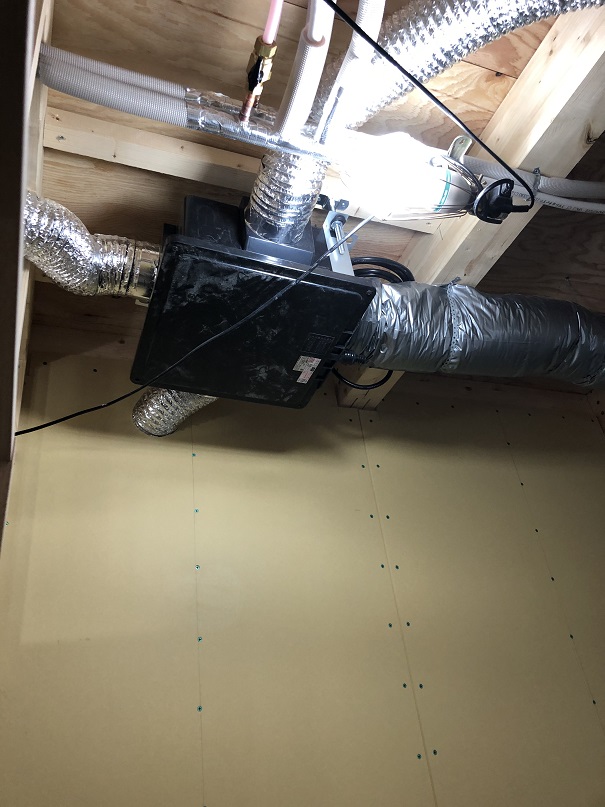 勾配天井なので作業スペースが狭く、配管の接続に難儀していましたが無事に接続できました。