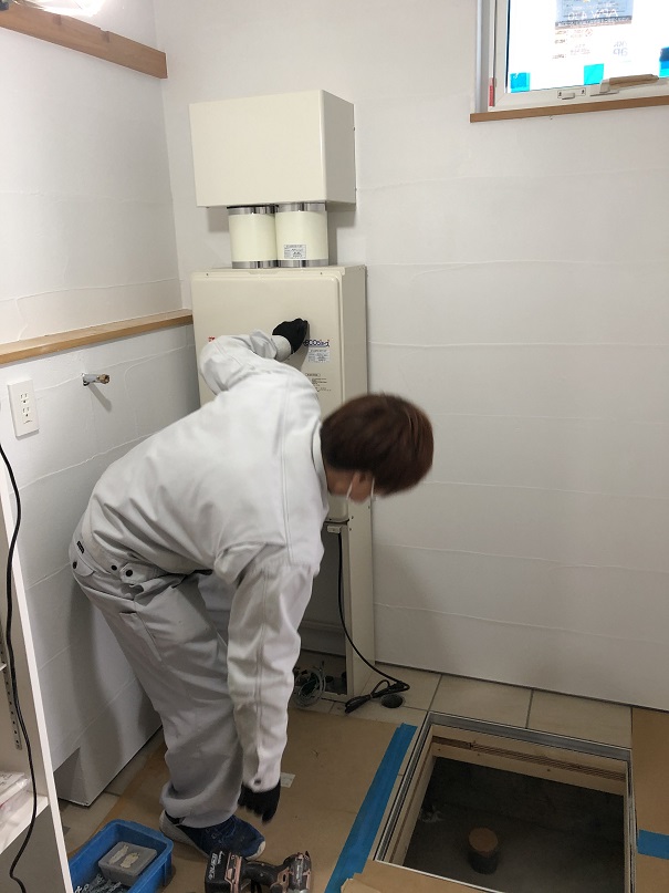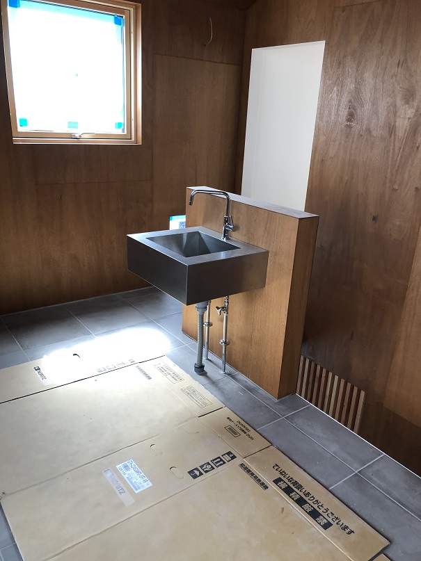 設備機器の取付が終わり、養生ベニヤを剥がしました。