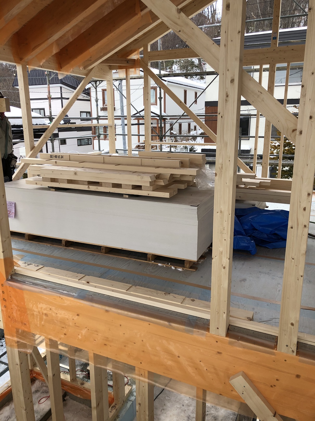 いつもは傾斜に倣って計画する事が多いのですが、この敷地は奥に札幌市内があり、できるだけ高い位置からの景色が良いと判断!