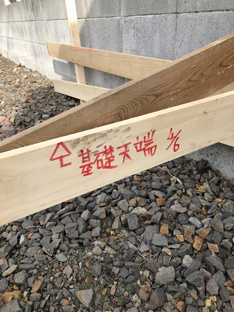 こんな感じで「木の上側が基礎のテッペンだよ。」ってことを記しています。