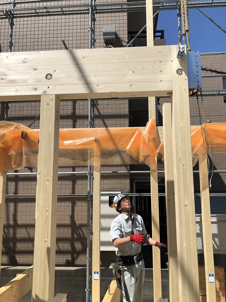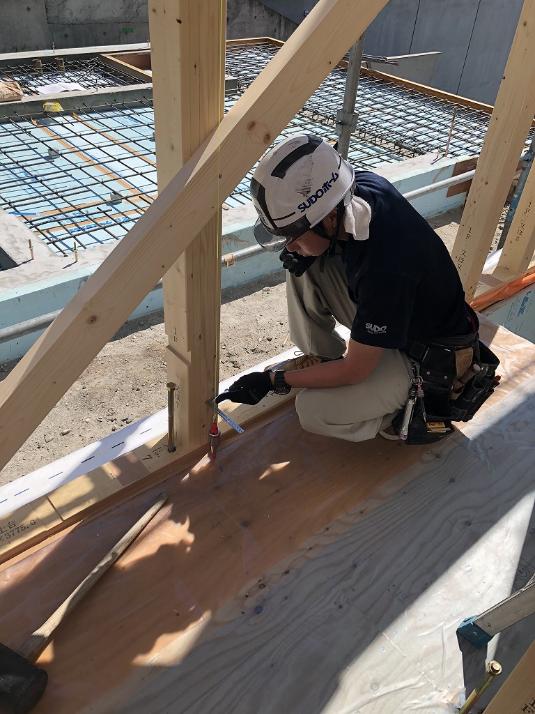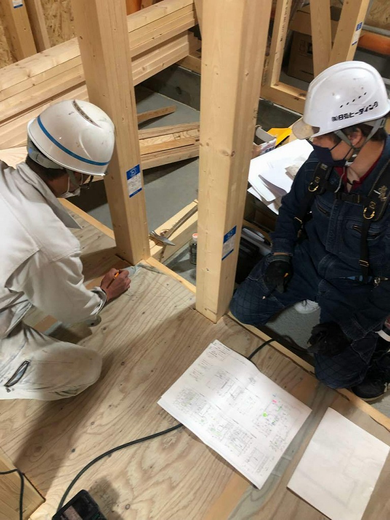 現場でアタフタしない為にも、設計図との整合性・軸組チェックは欠かせませんね。