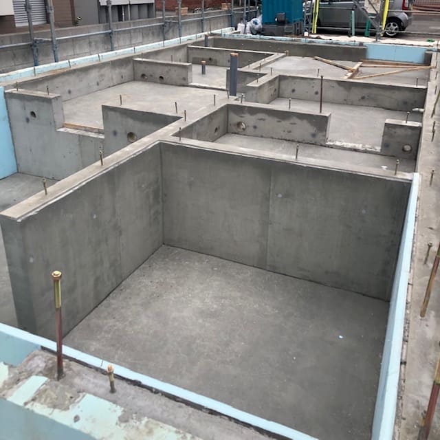 床下収納として利用するスペースためですね。この深基礎部分の仕上げはモルタルで仕上げます。