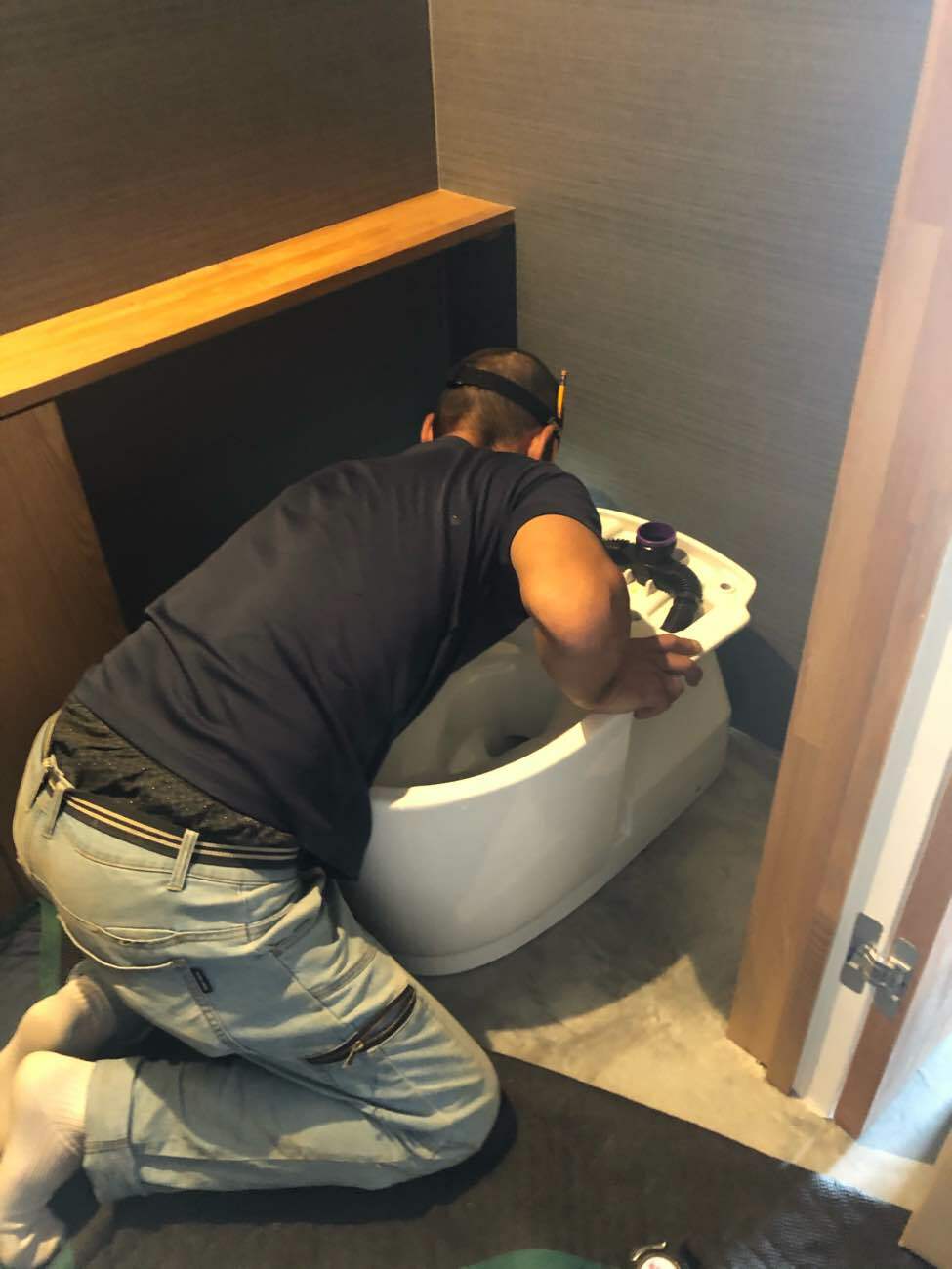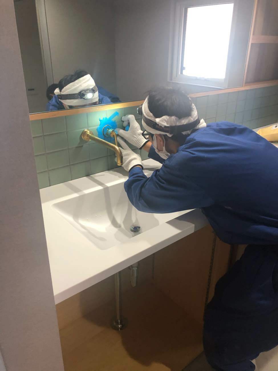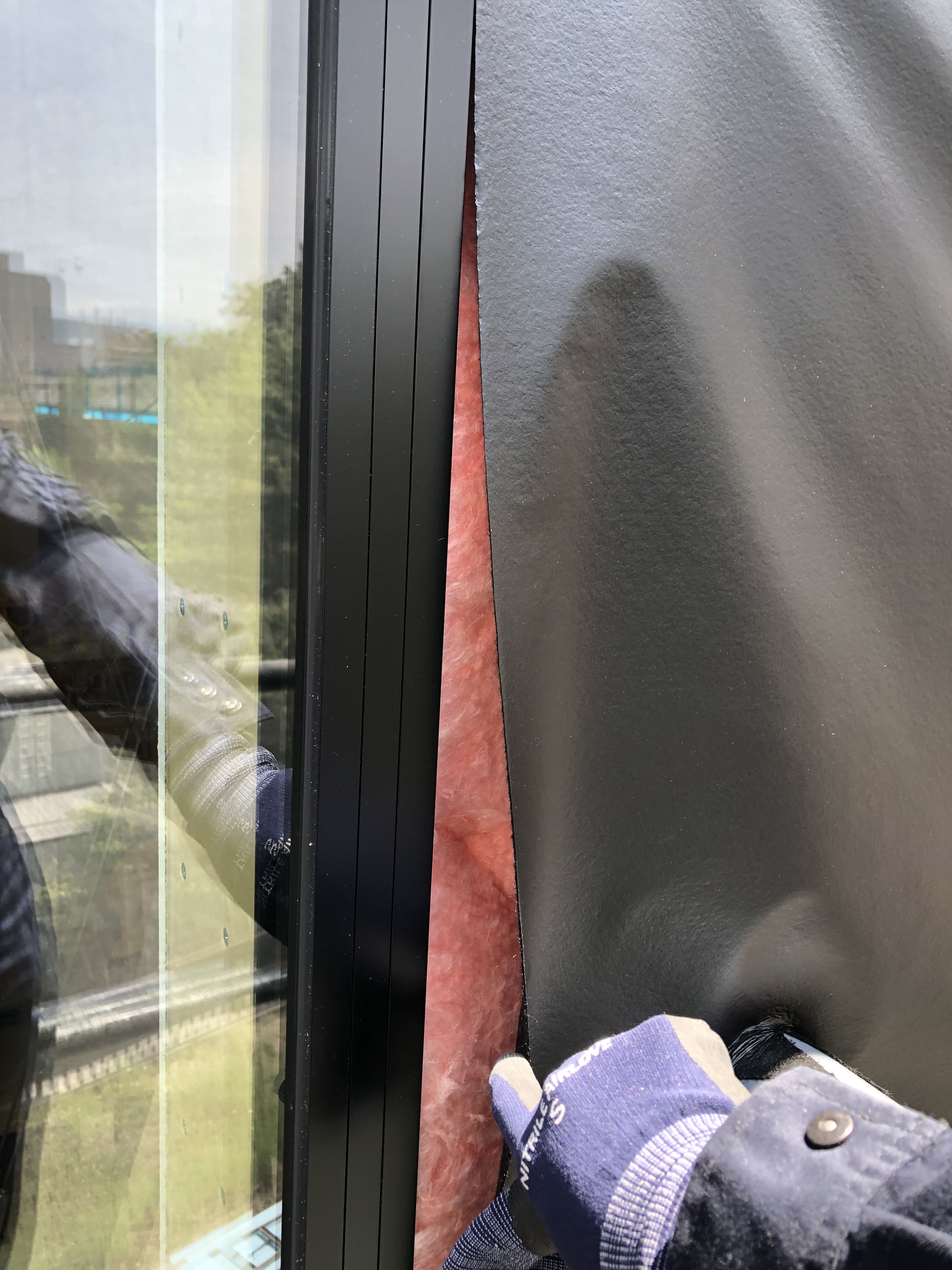 設備機器が取付終わり間髪を容れずコーキング屋さん。
