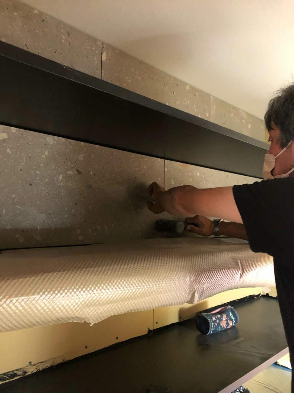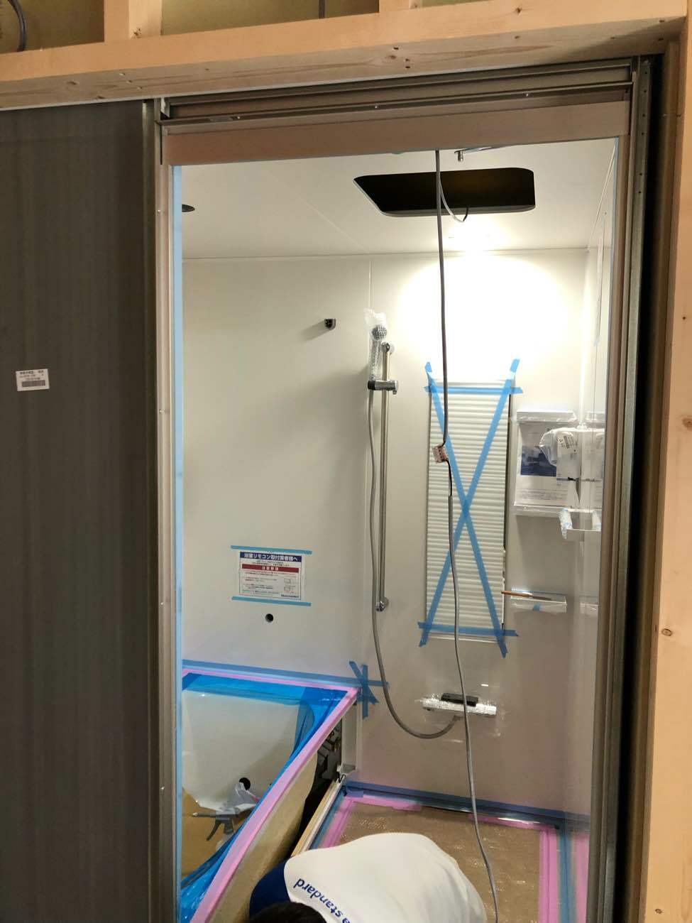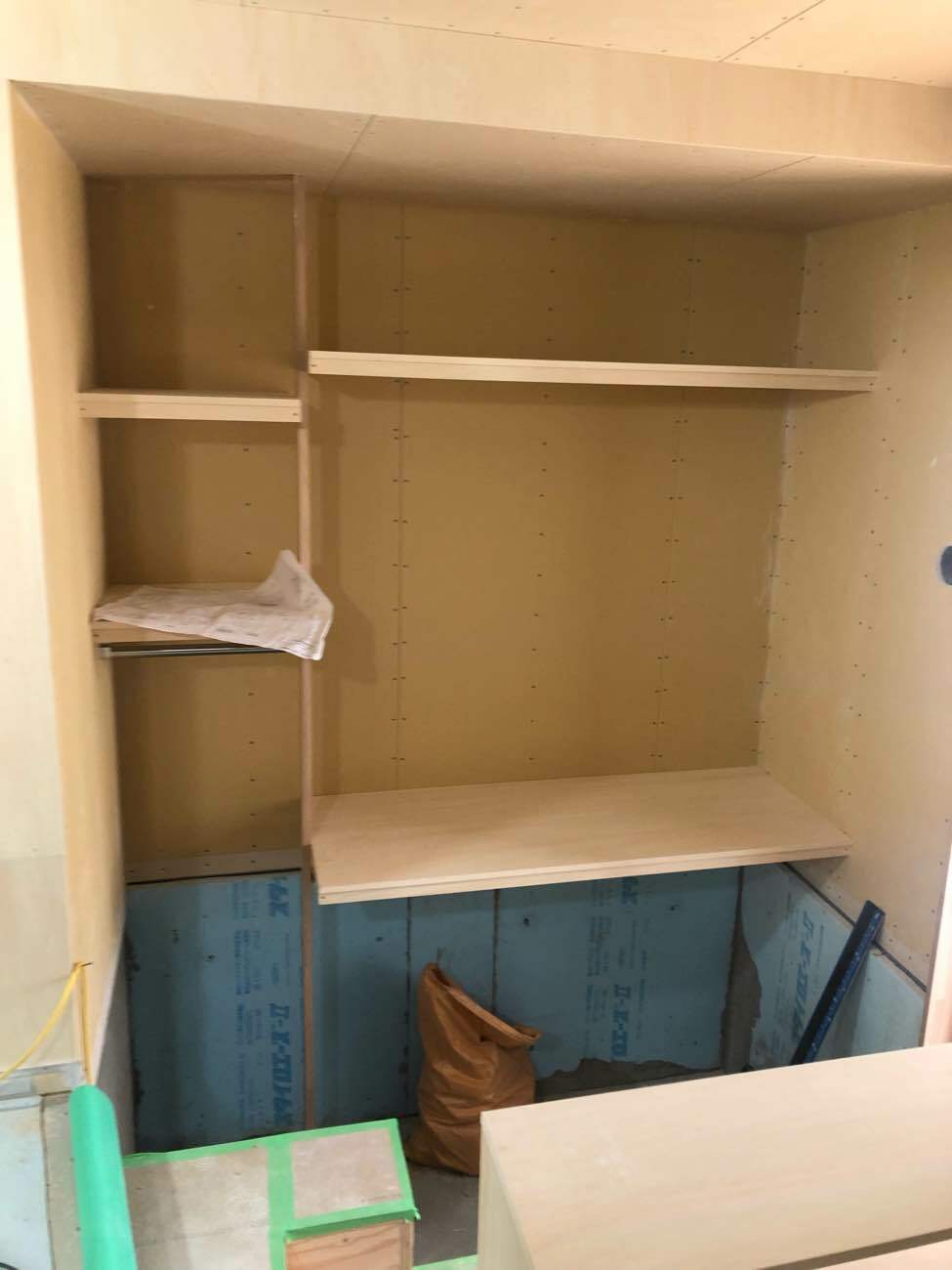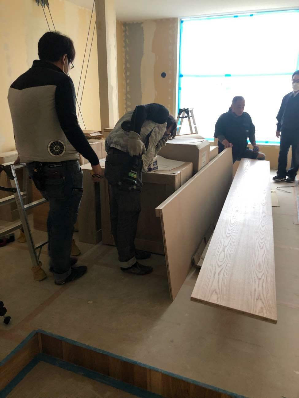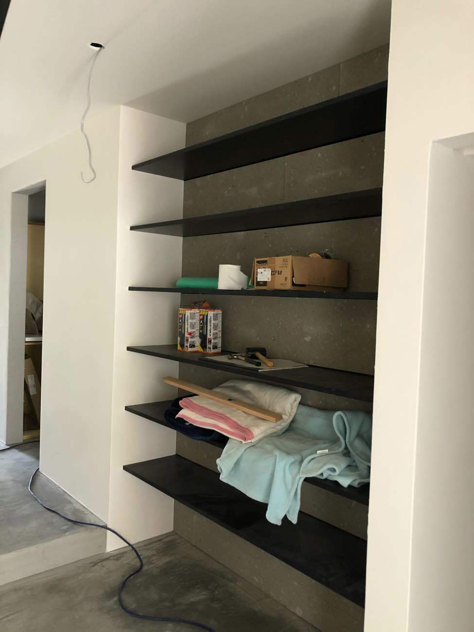 (もしかしたら養生してるようにしか見えてないかもですが。)実は左官で仕上げる天板で、現場仕上げになるのでこんな感じになっています。