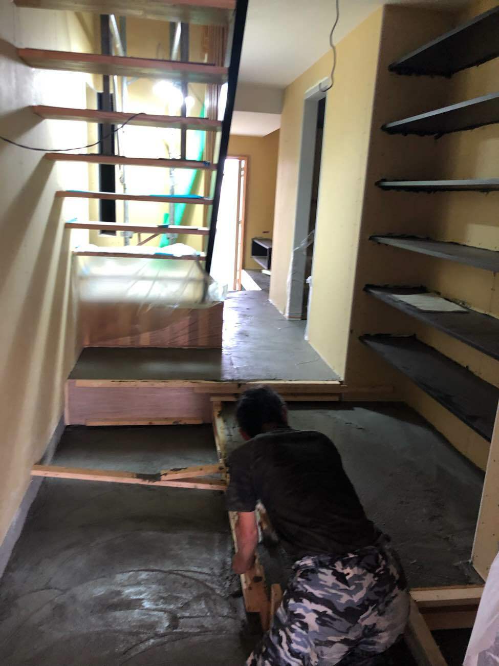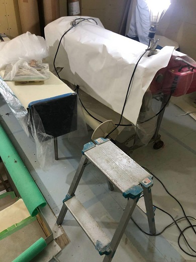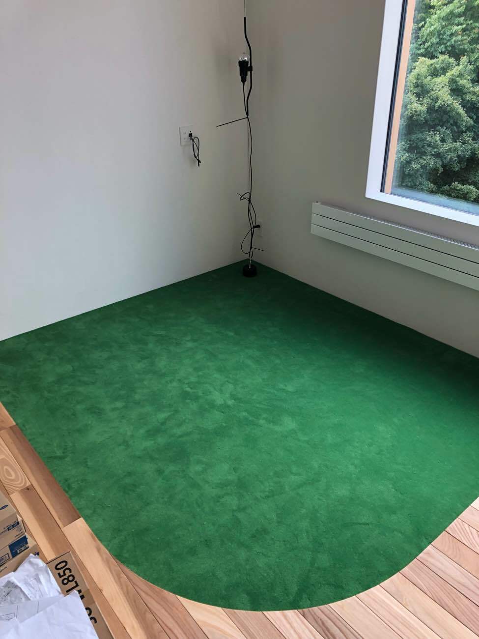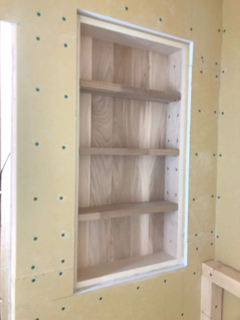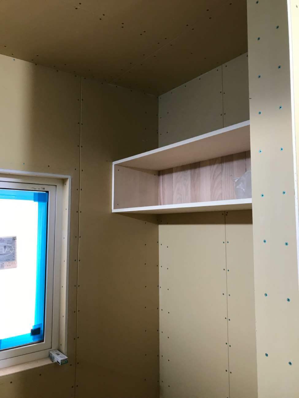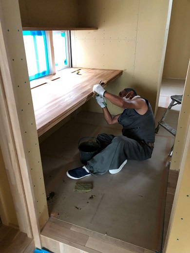 (もしかしたら養生してるようにしか見えてないかもですが。)実は左官で仕上げる天板で、現場仕上げになるのでこんな感じになっています。