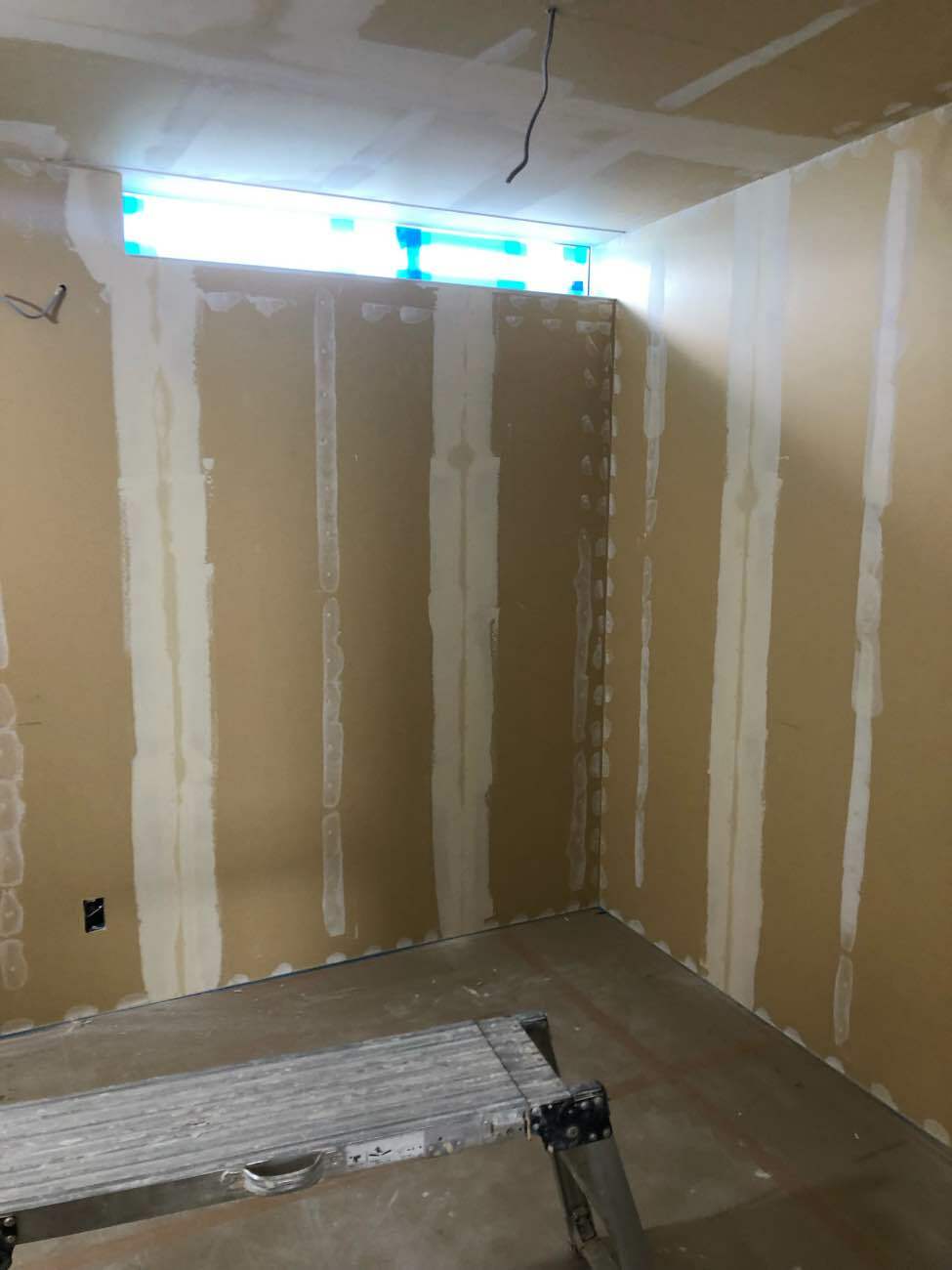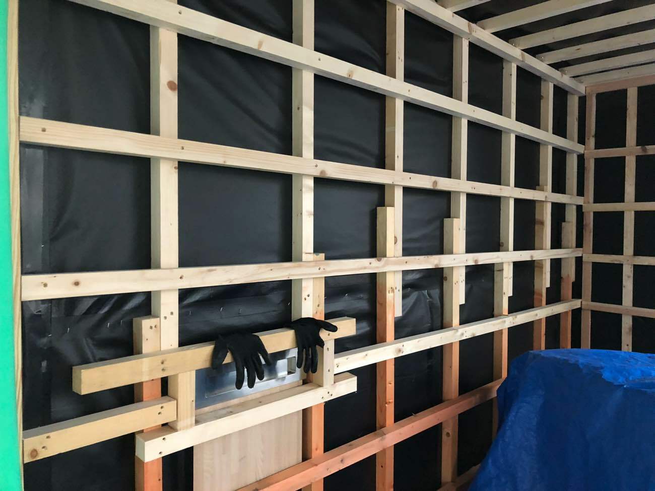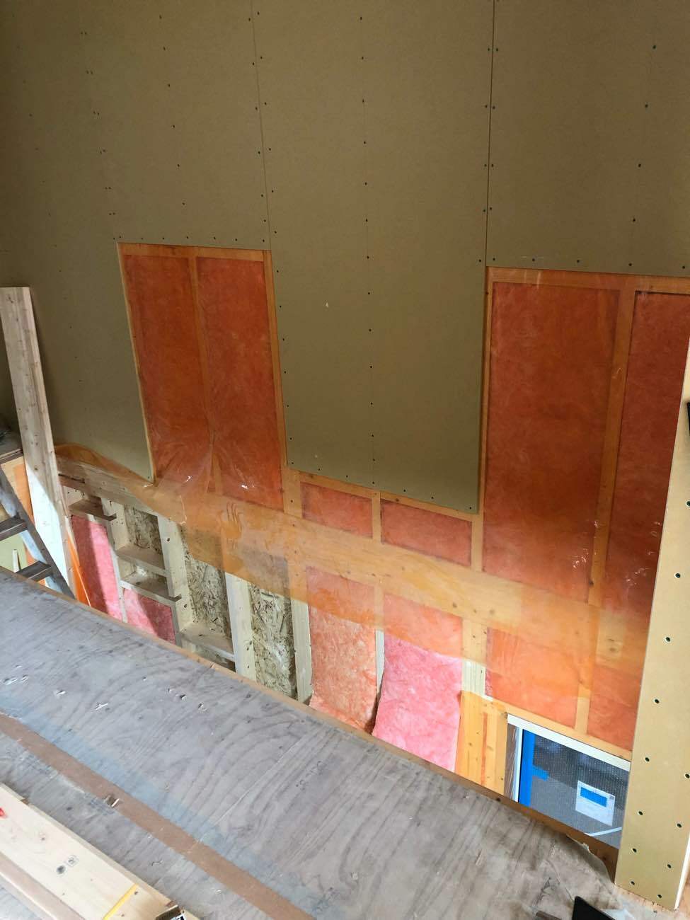 石膏ボードのジョイント、ビスをパテ処理していきます。