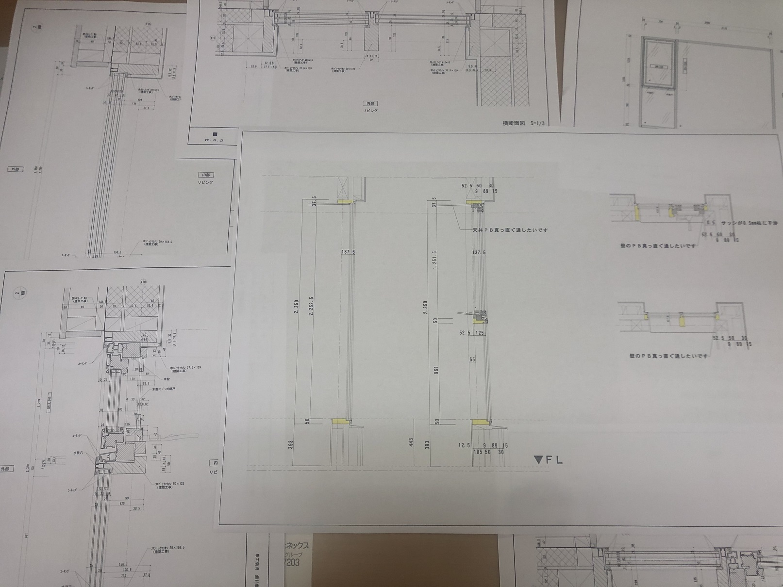 細部の納まりを検討していく中で多少変更が生じたりもする場合もあります。もちろんこの時も設計担当と協議しながらです。