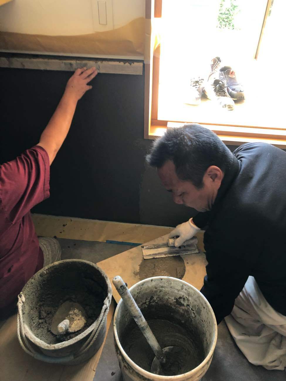 左官で仕上がったキッチンの仕上がり具合はのちほどご紹介します。