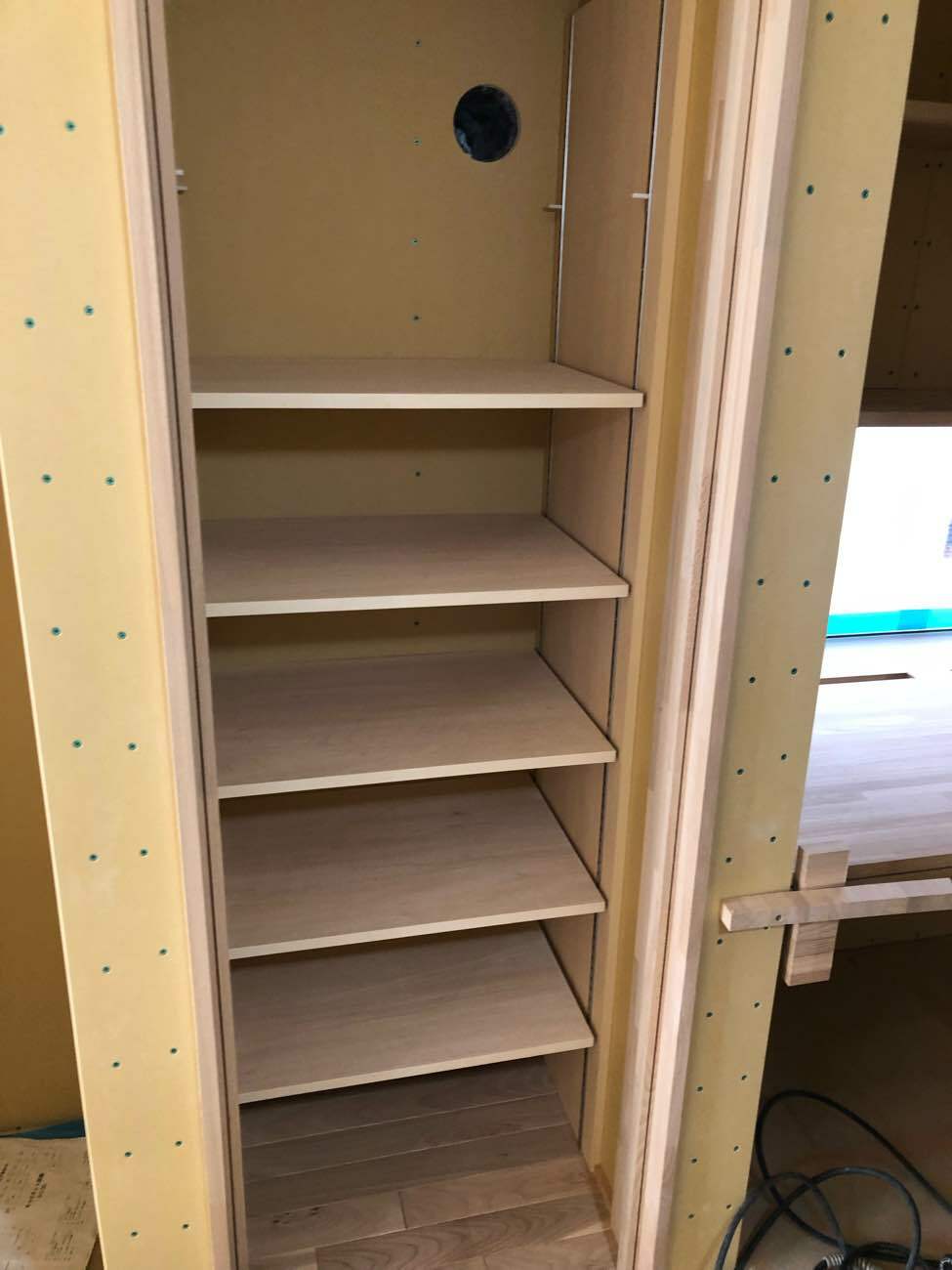 展開図1枚で色んな情報を見ることができます。棚の高さとか段数とかだけじゃなく、スイッチの位置とか設備のリモコンとかまで。