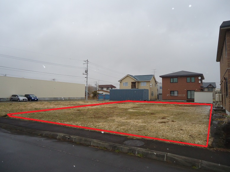 南西道路に面した奥に長い四角形で110坪の土地になります。