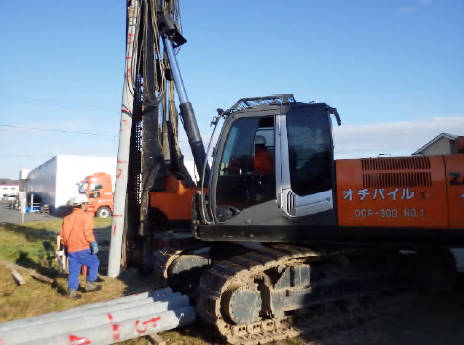 5m+5.5m つなぎ合わせてトータル10.5mの杭を55ヵ所に打ち込みます。