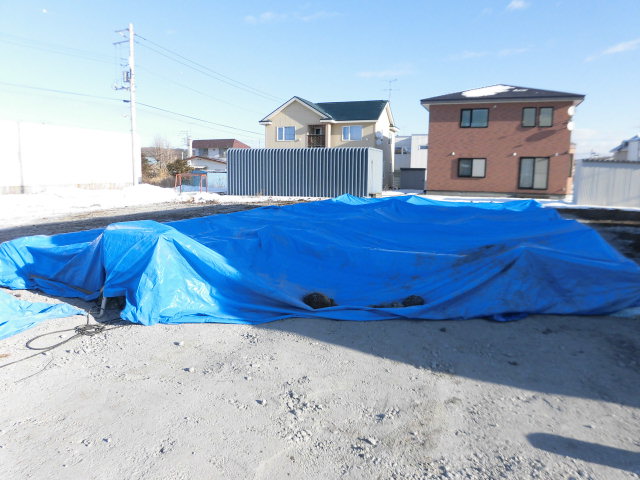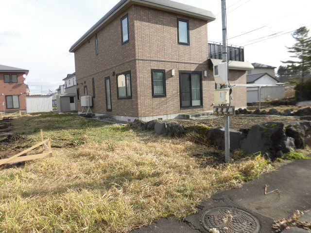 分譲地などでは汚水升と水道管が敷地内に引き込まれていることが多いのですが、こちらは汚水升のみ設置済で水道は道路下にある水道管から引き込みます。