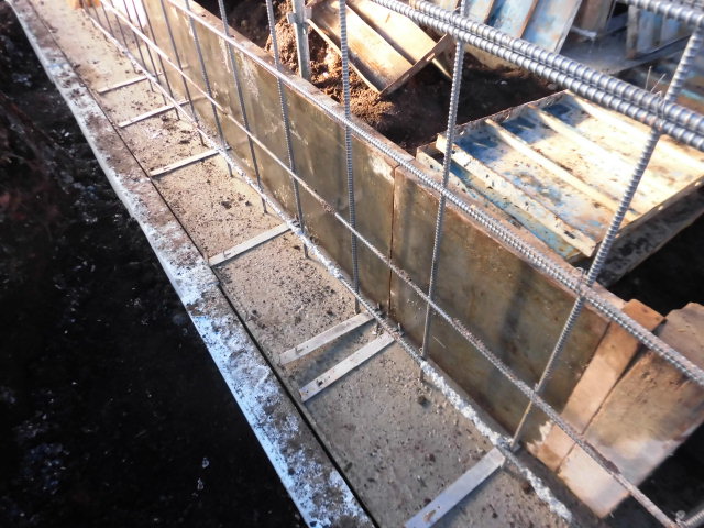 基礎の立上がり部分にコンクリートを流し込むまでの作業工程となります。