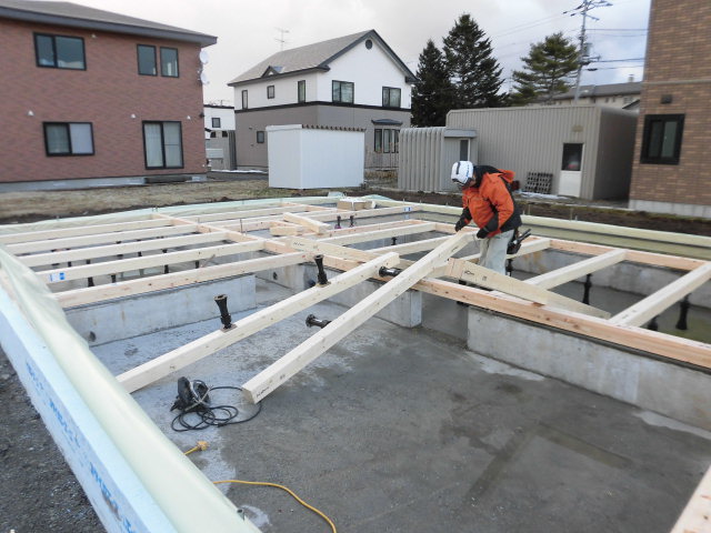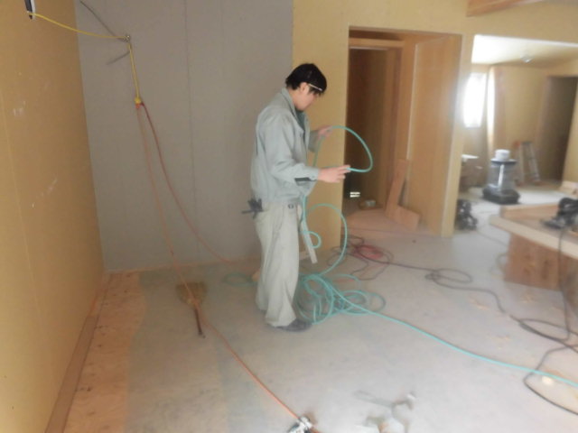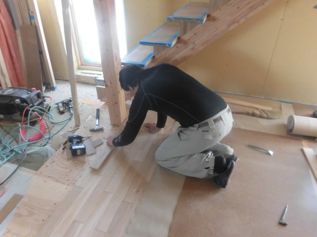 Kんた大工もフローリングを貼っています。