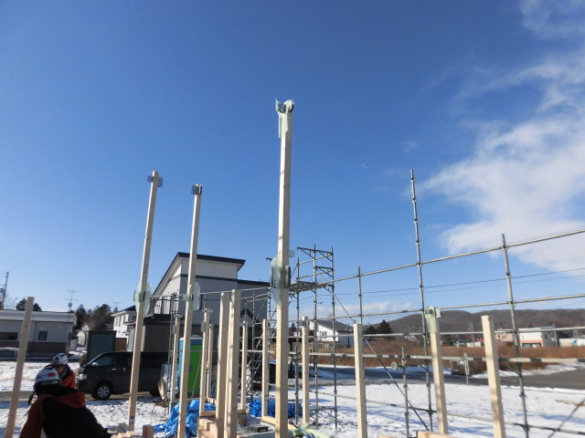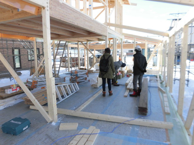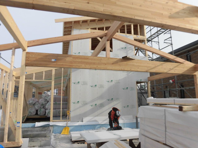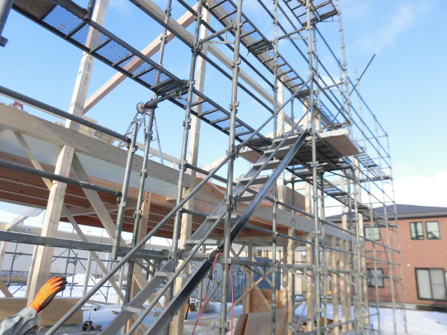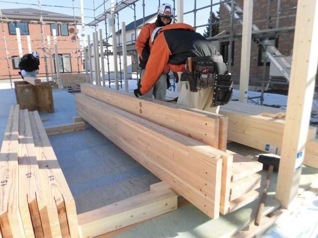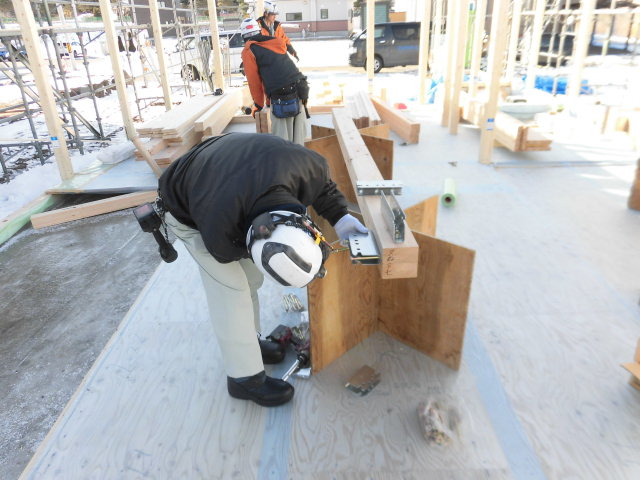 Oさむ大工と協力しながら組み上げていきます。