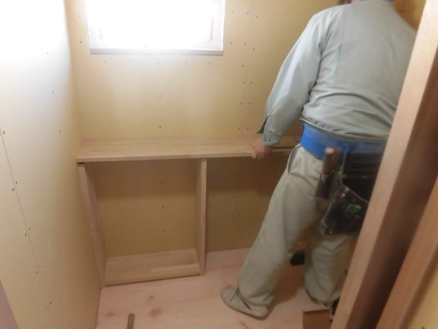 クローゼットの収納を造っています。