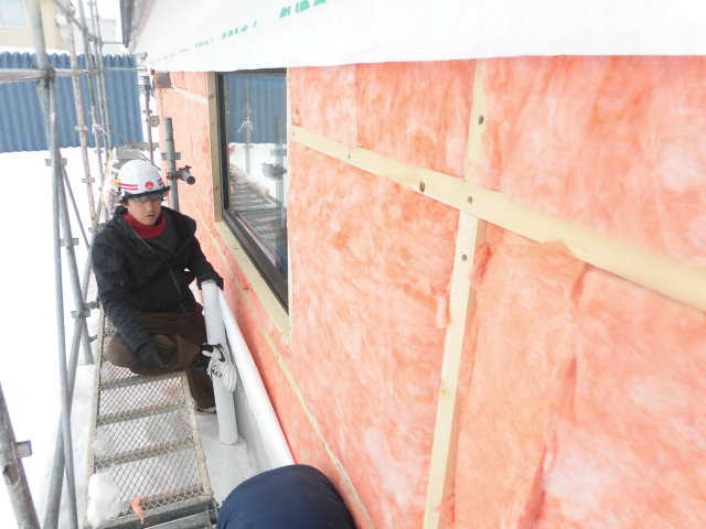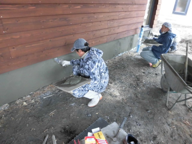 スタイロフォームは紫外線で劣化してしまいますので、モルタルで保護してあげます。